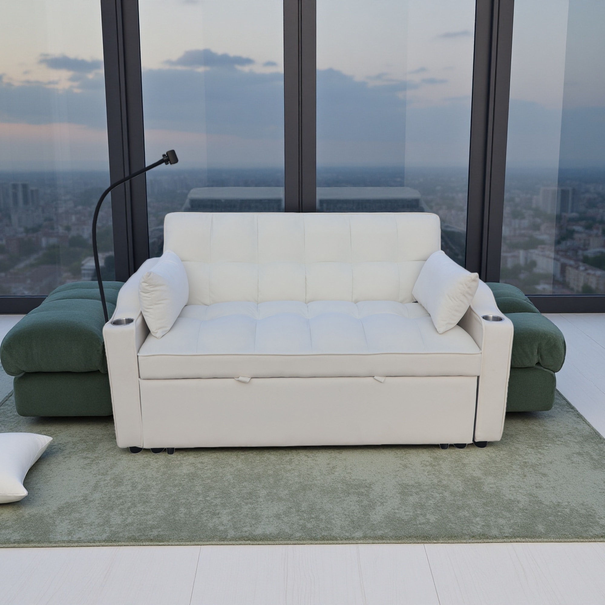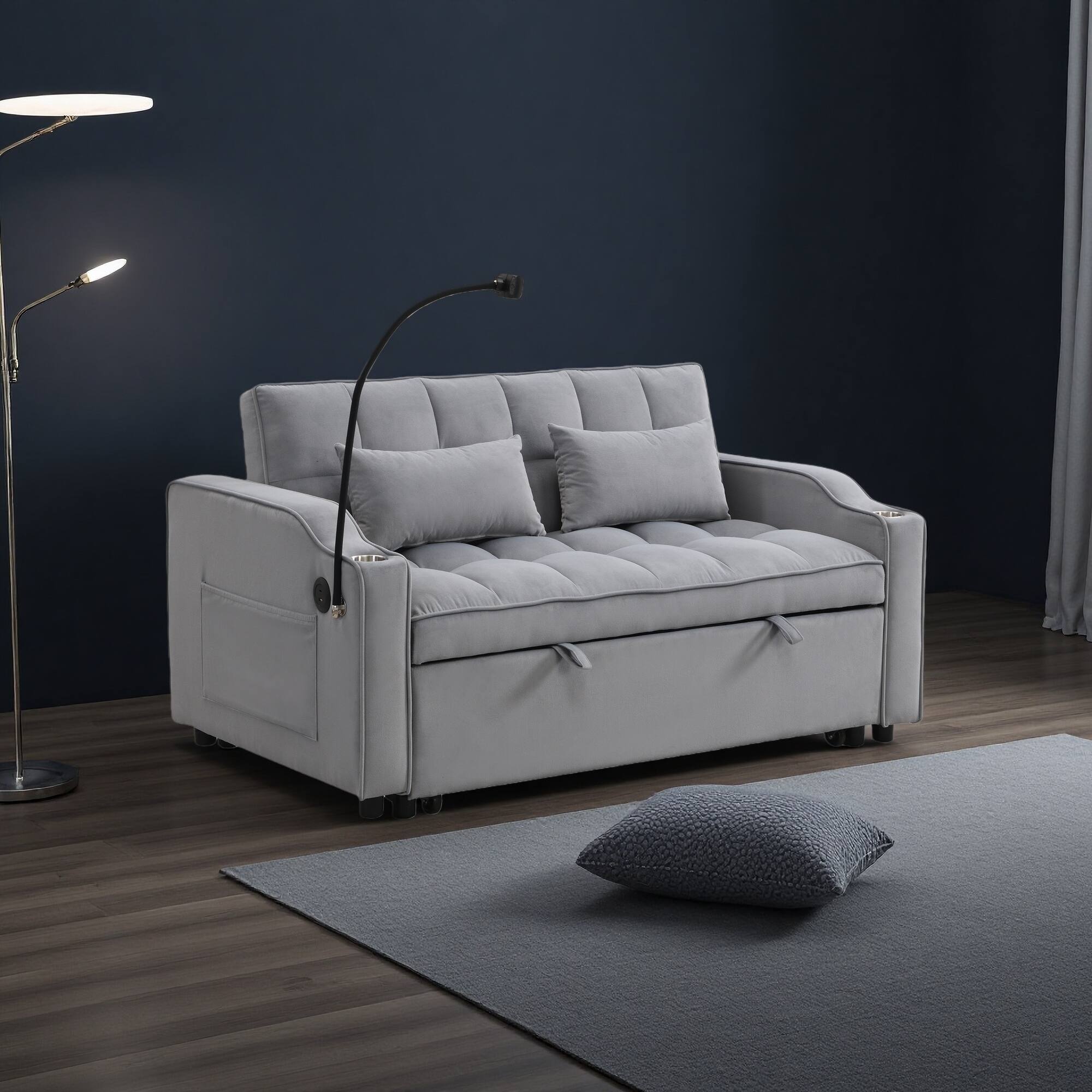 70.2" Velvet 3-in-1 Pull-Out Sleeper Sofa with Adjustable Back, USB Ports and Phone Stand