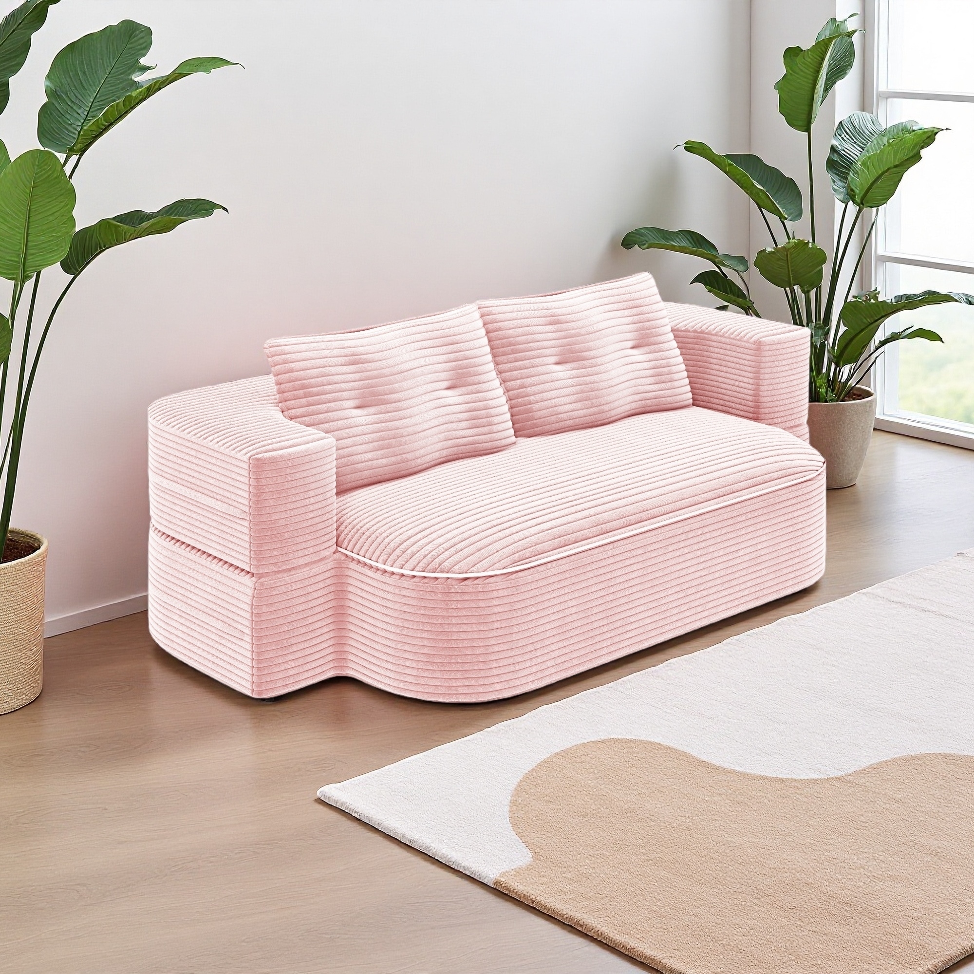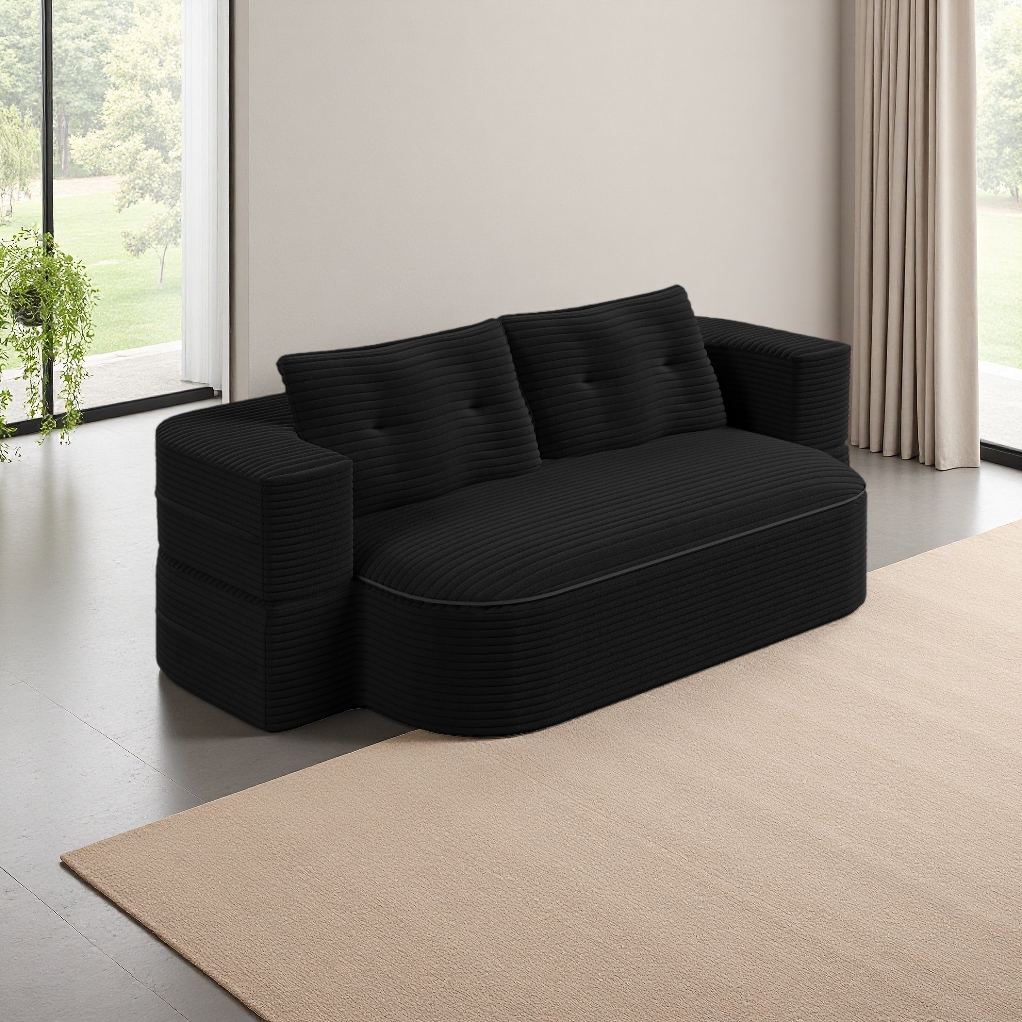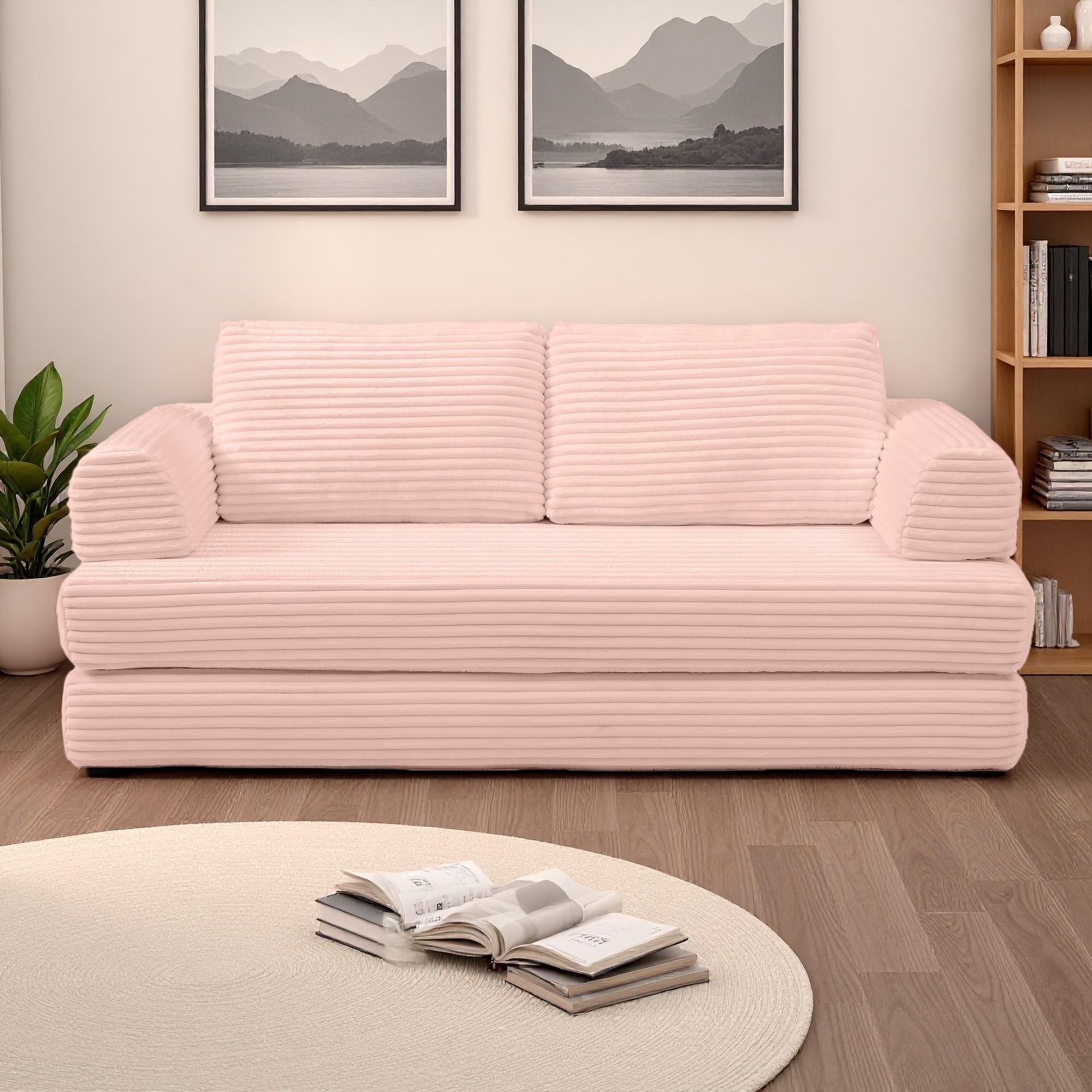 79.5" Corduroy Folding Sofa Bed with Pillows, No Assembly Required, 3-Seater
