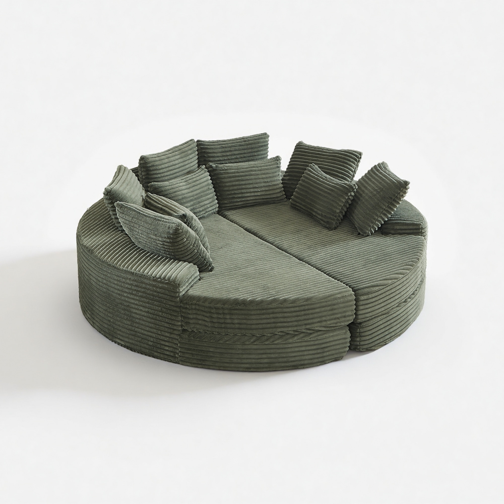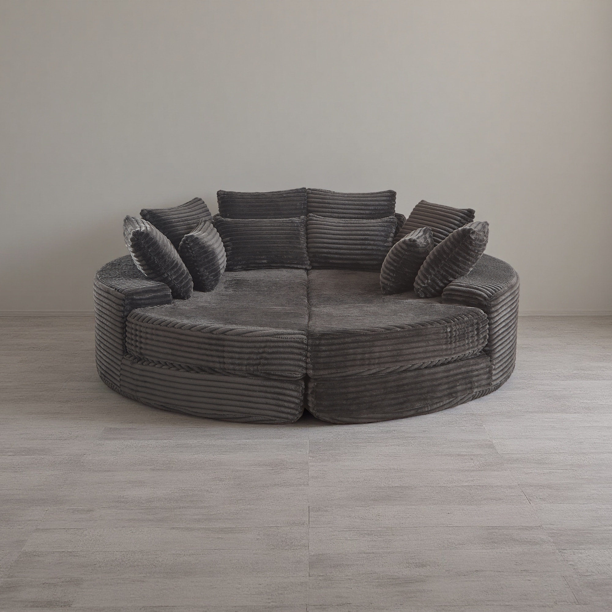 78.5" Corduroy Round Oversized Convertible Recliner Sofa with 5 Throw Pillows, No Assembly