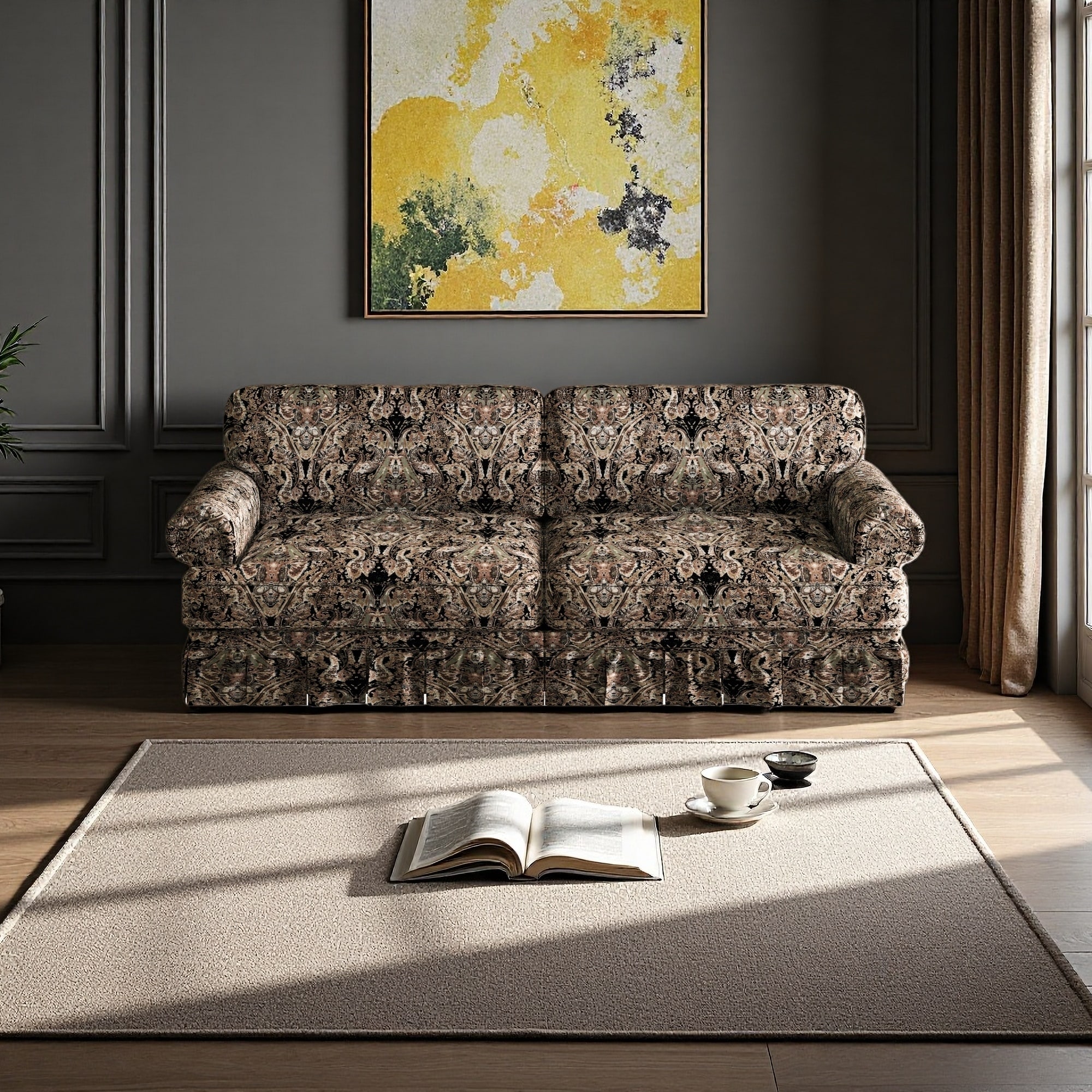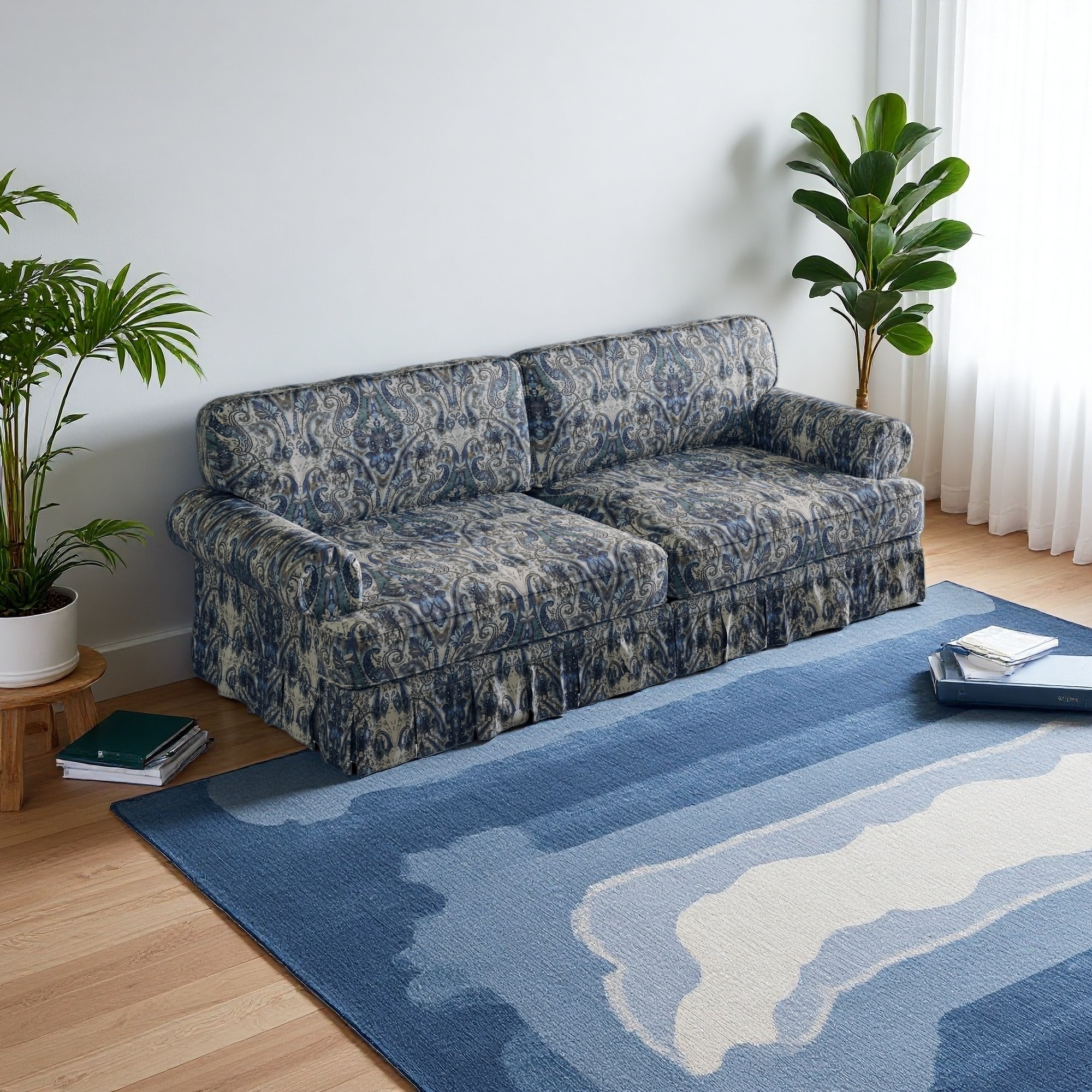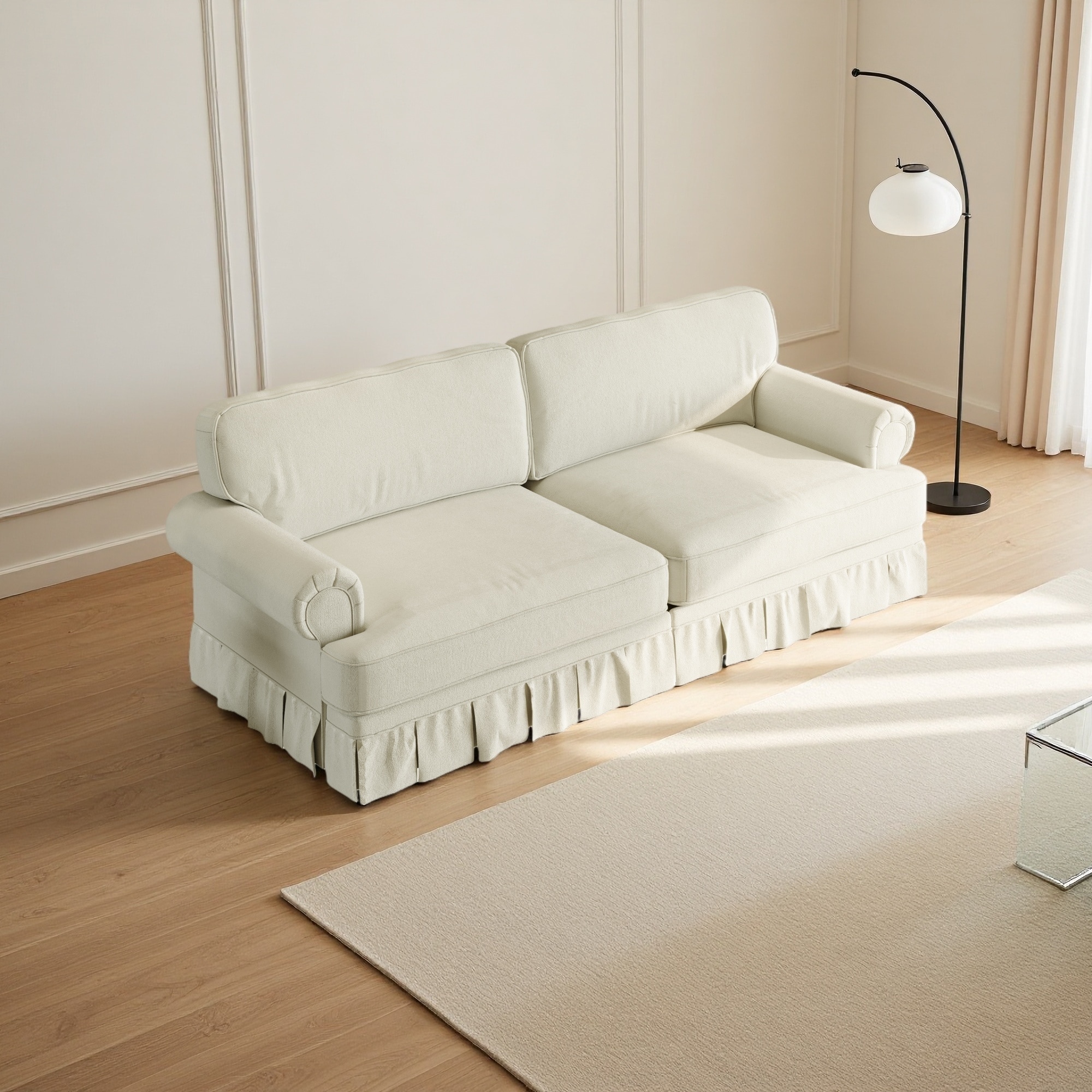 74" Oxford Fabric Cloud Mid-Century Sofa with Rolled Arms and Extra Deep Seat