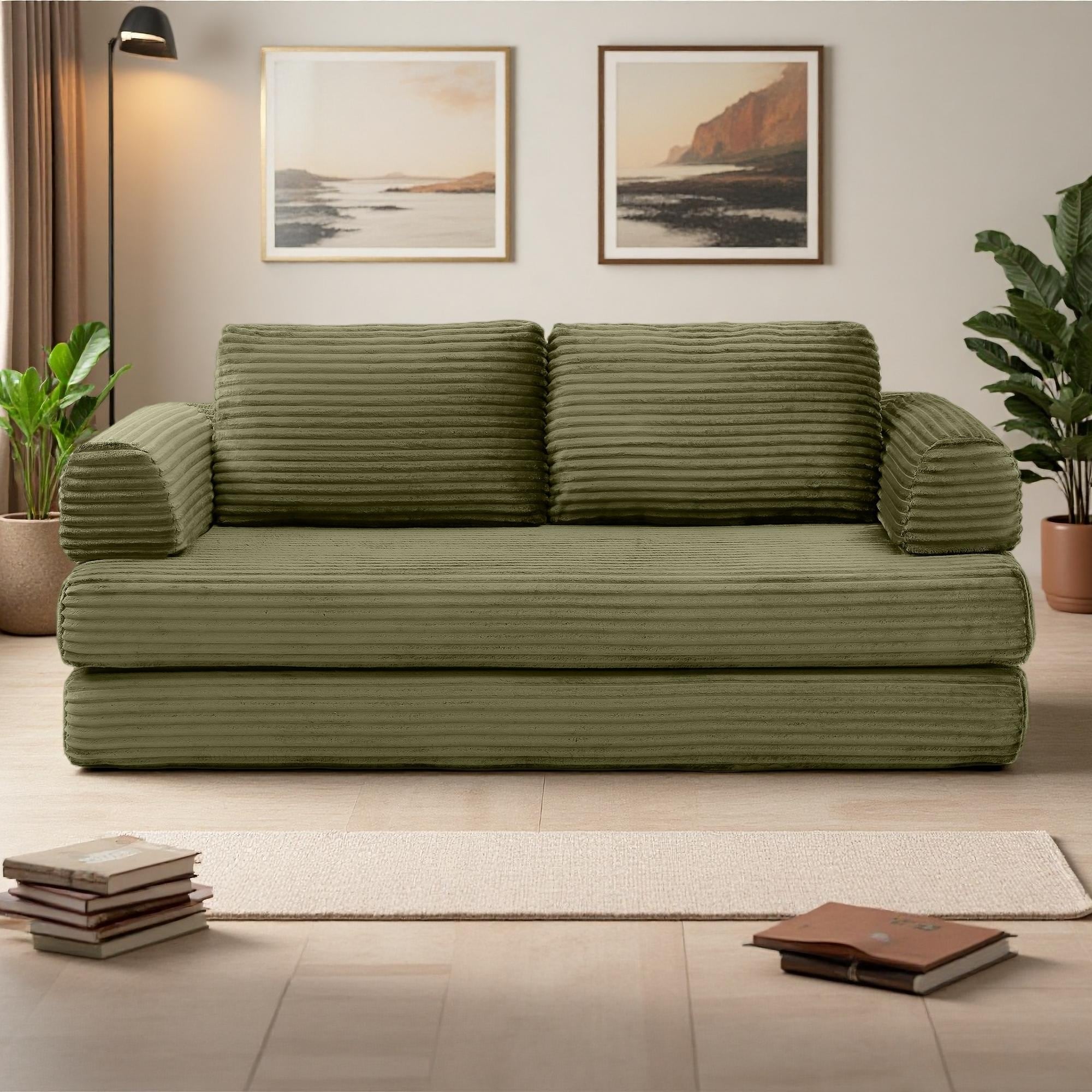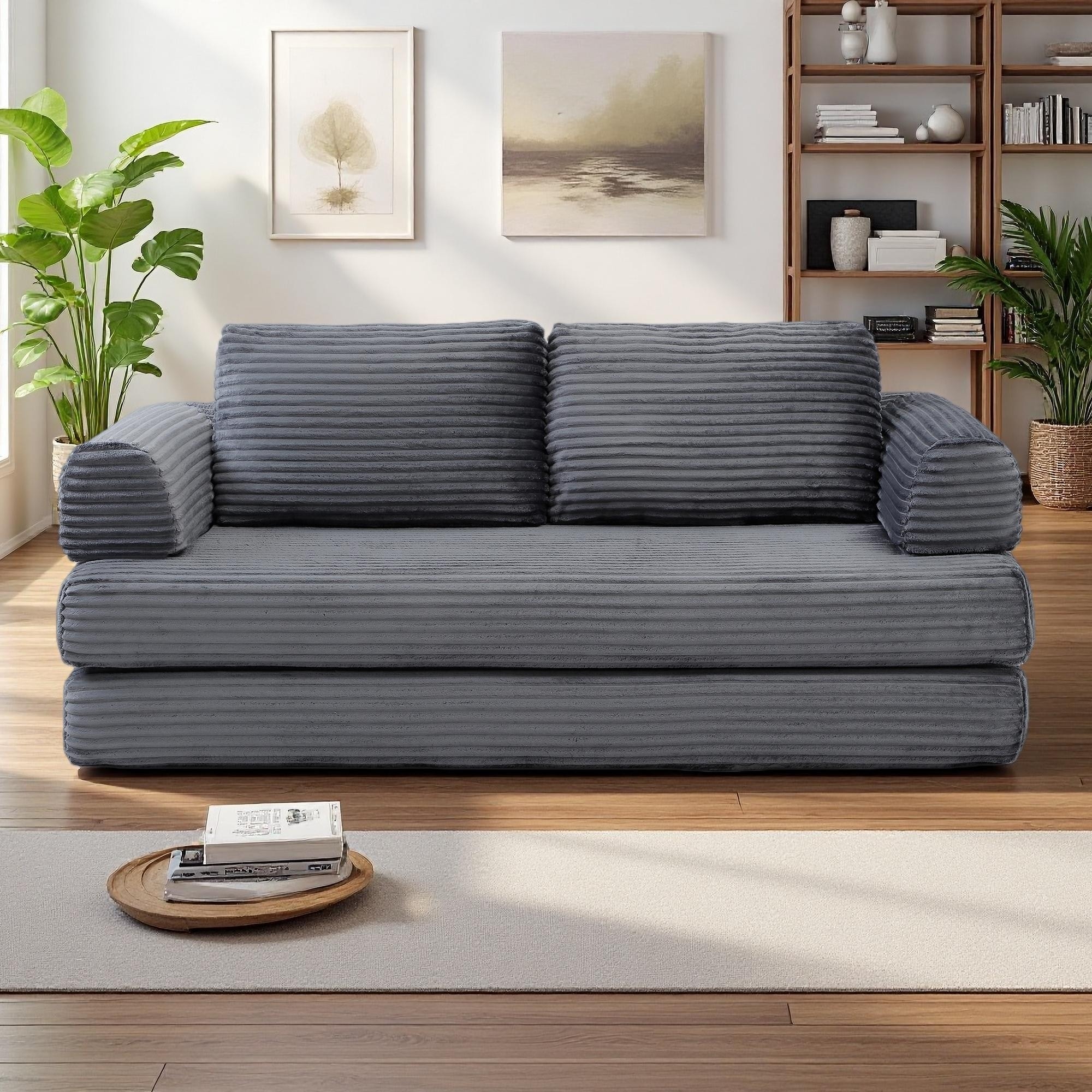 79.5" Corduroy Folding Sofa Bed with Pillows, No Assembly Required, 3-Seater