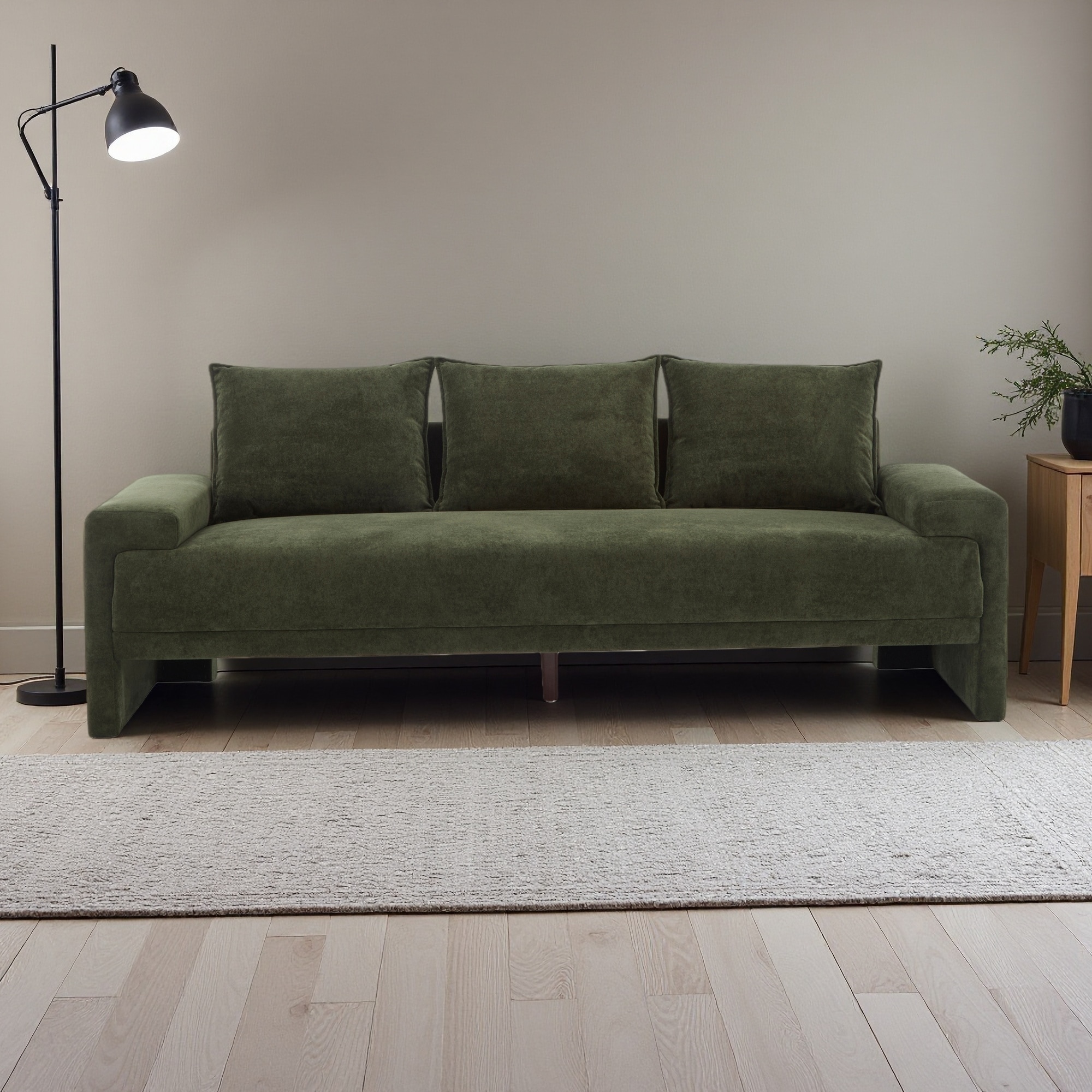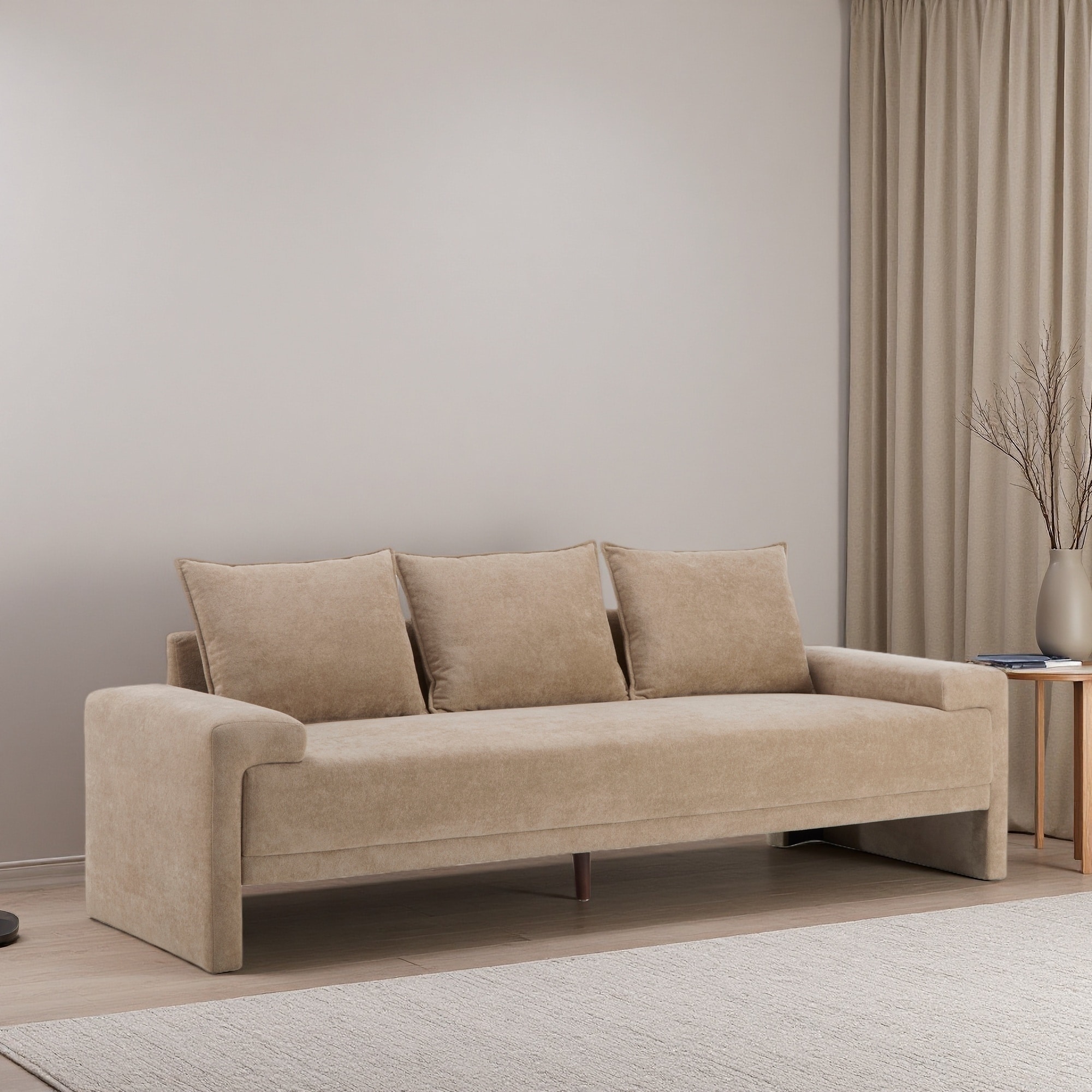 84.5" Velvet Modern Sofa with Spring Cushion and Center Leg Support, 3-Seater