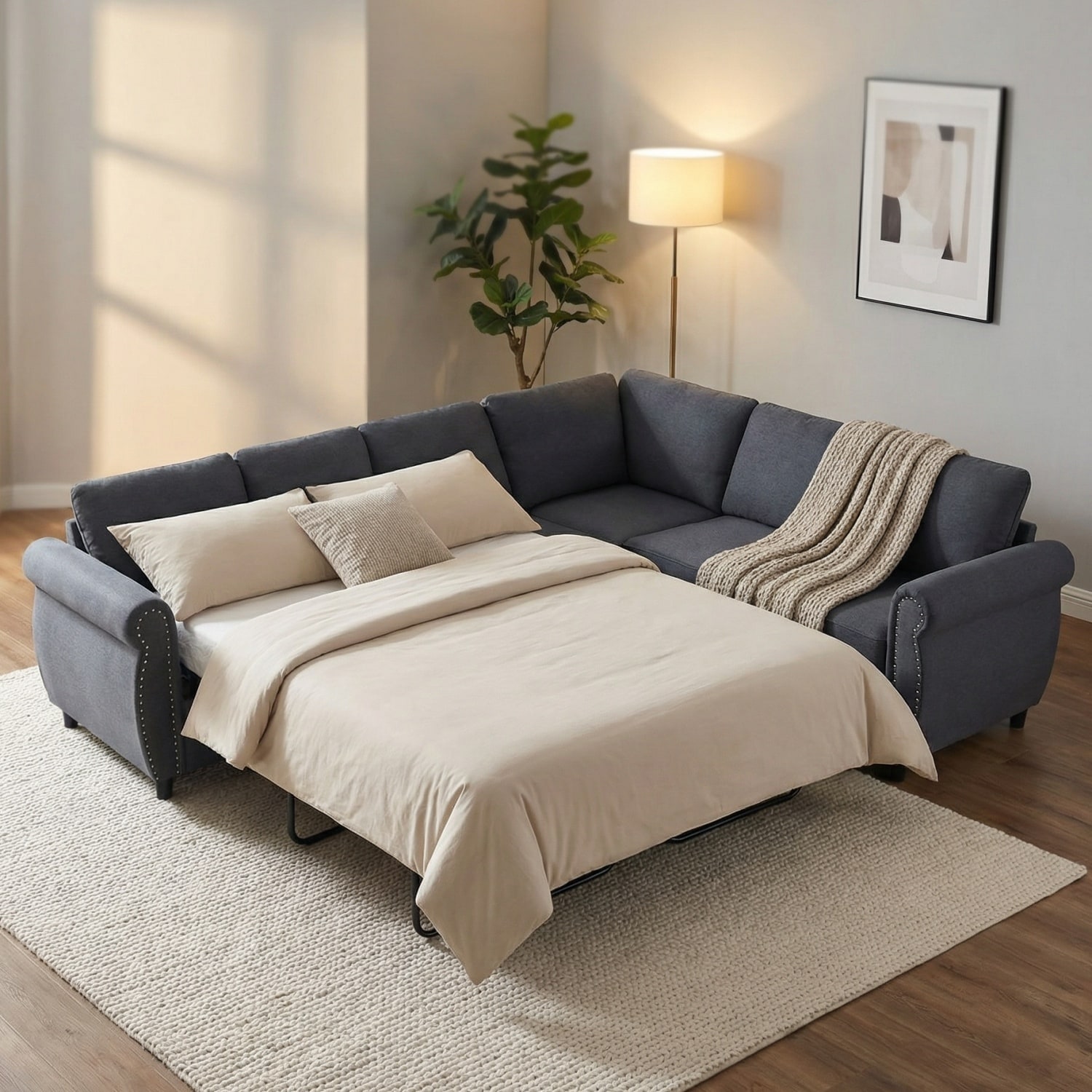 104'' Large L-Shaped Sectional Sleeper Sofa 2-in-1 Pull Out Couch Bed