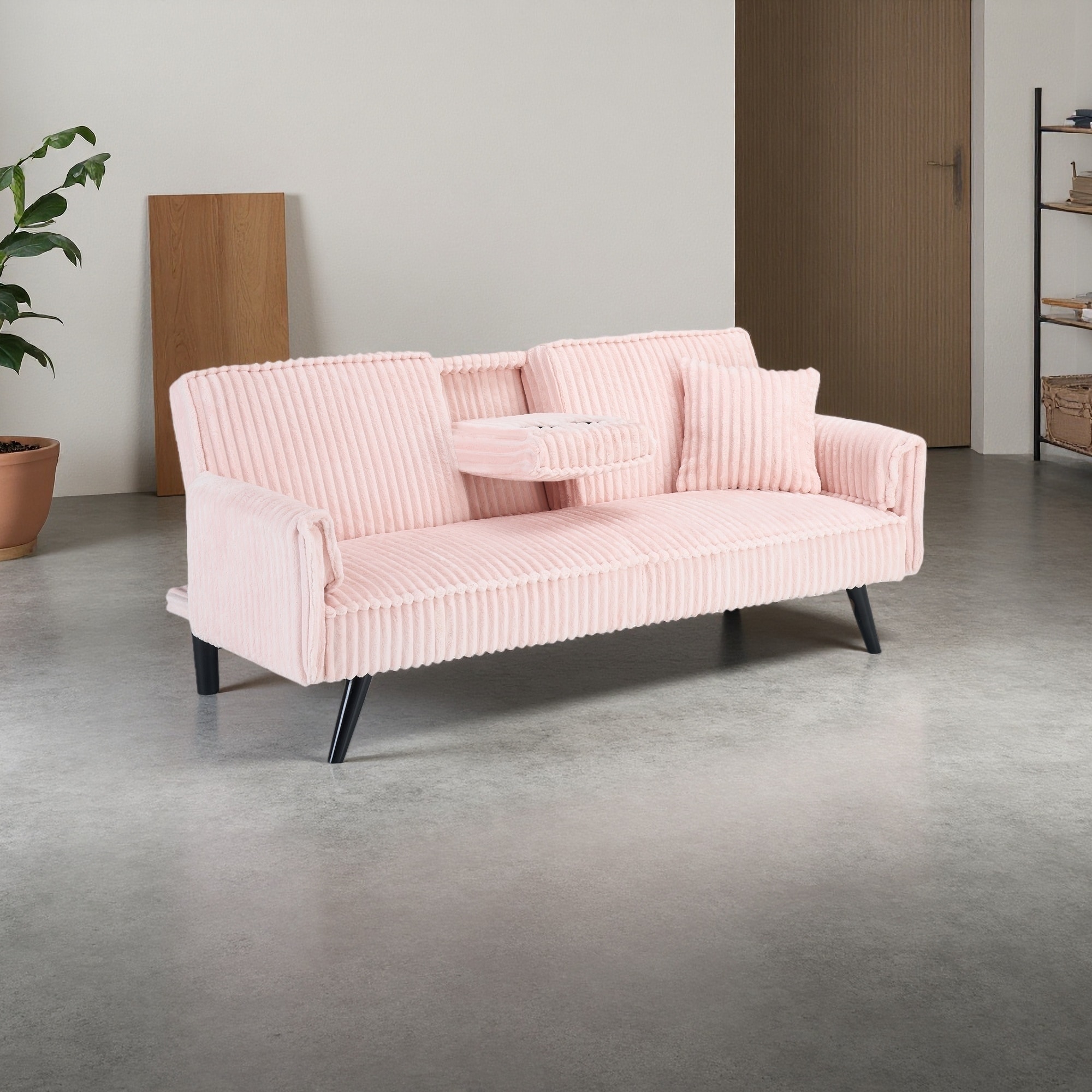 72.04" Corduroy Minimalist Straight-line Sofa with Convertible Cup Holder and Adjustable Backrest (2-Seater)