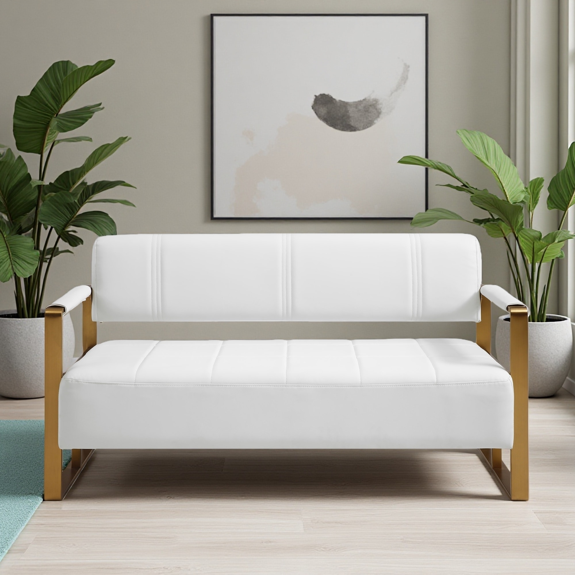 57.9" Faux Bonded Leather Loveseat Sofa with Golden Metal Arms and High-Density Foam Cushion