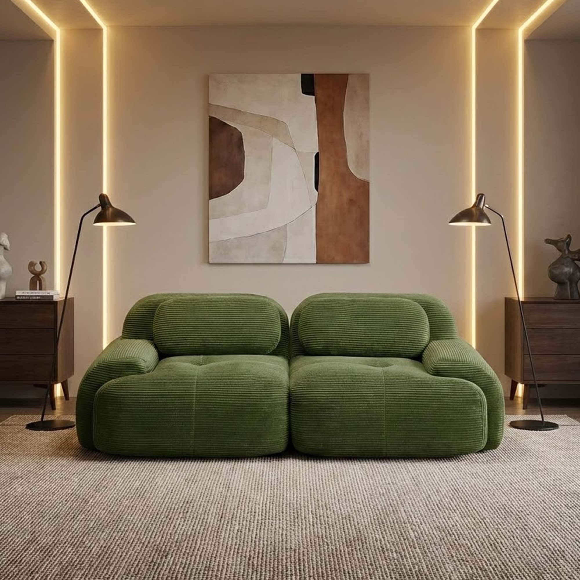Modern Modular Corduroy 2-Seat Sofa with Curved Armrests and Anti-Slip Base,No Assembly Required for Living Rooms & Media Spaces