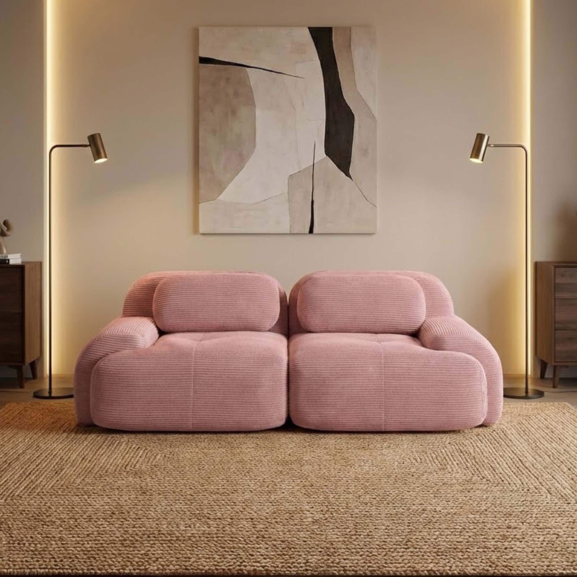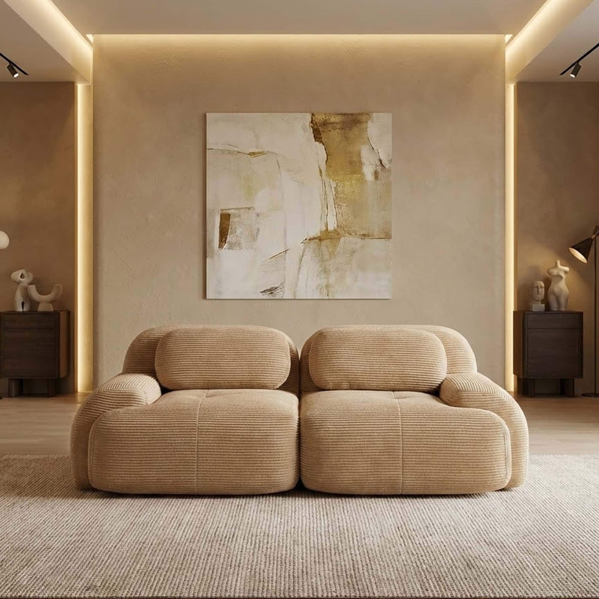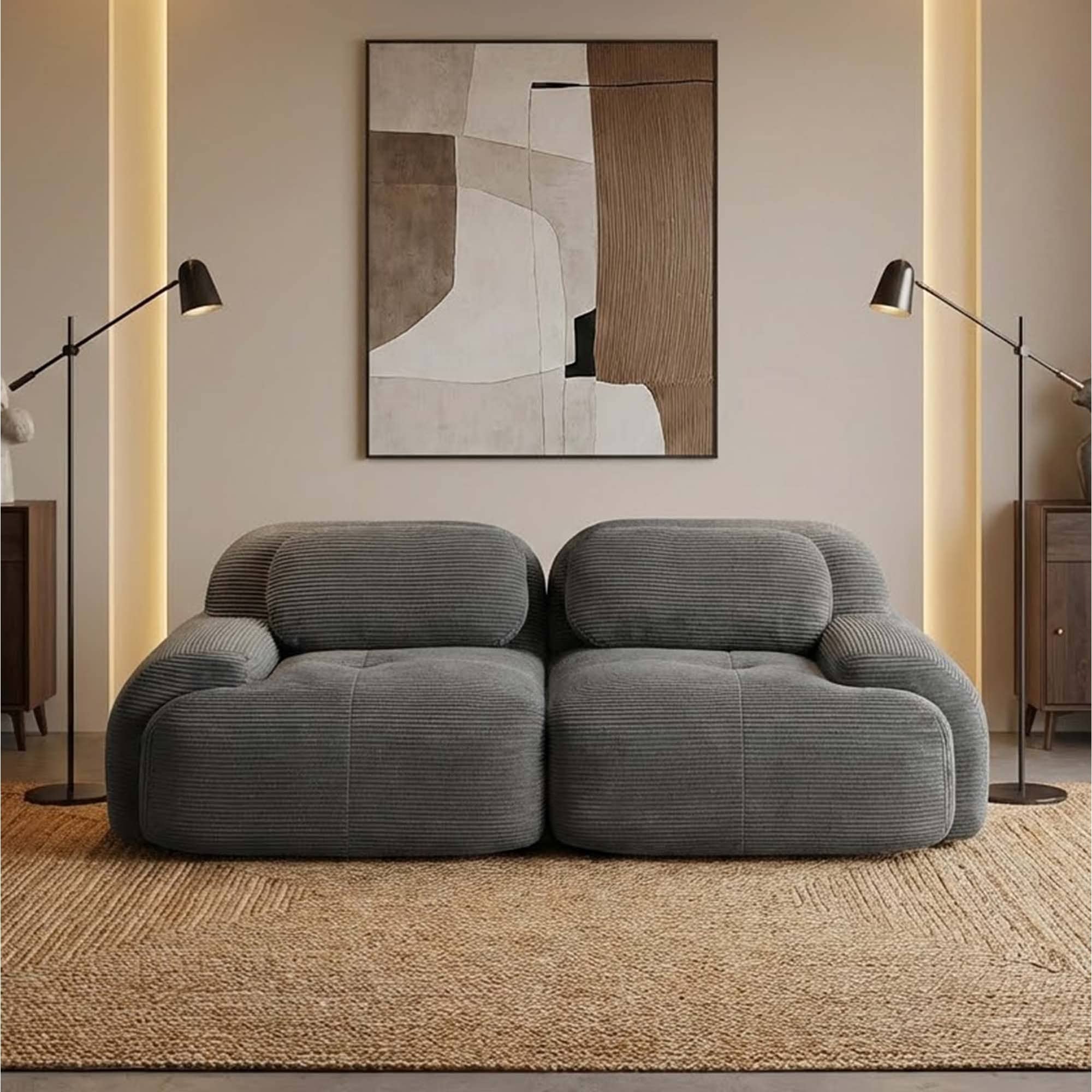Modern Modular Corduroy 2-Seat Sofa with Curved Armrests and Anti-Slip Base,No Assembly Required for Living Rooms & Media Spaces