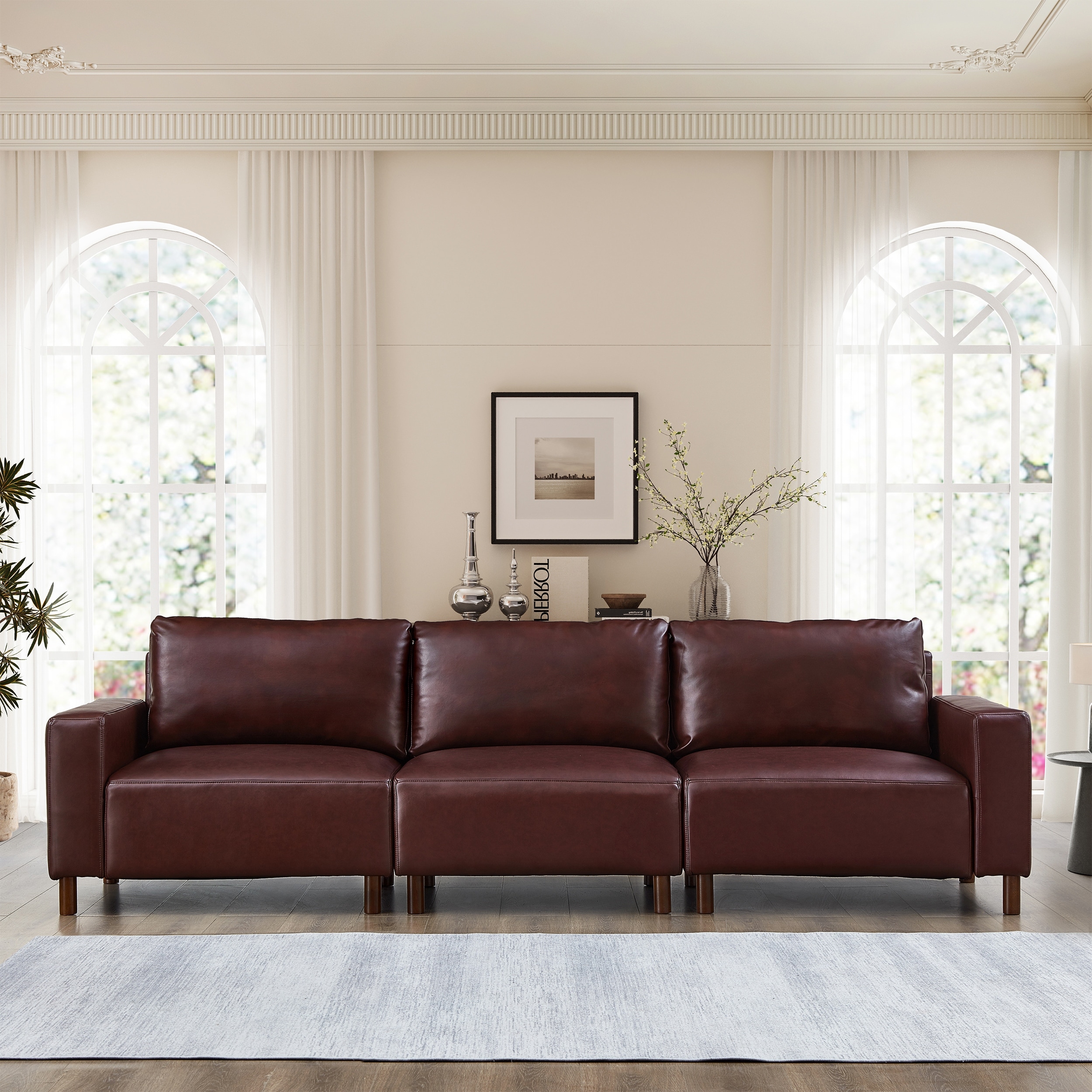 2+3 Sectional Sofa Set Faux PU Leather Deep Seat Couch Sofa Upholstered Settee Sofa and 2 Seat Lounge Loveseat Couch