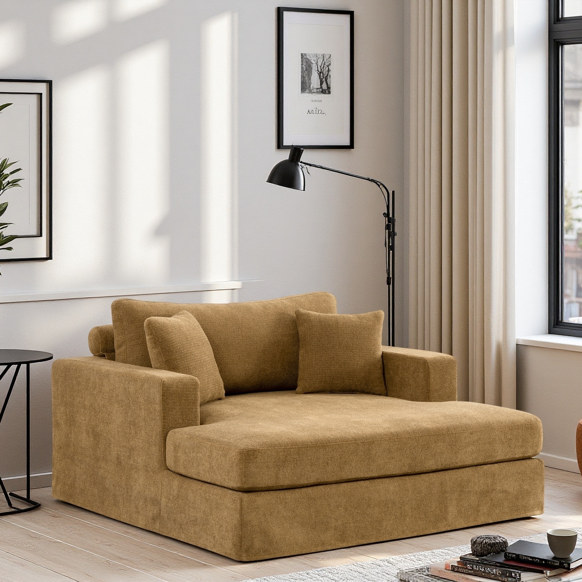 56.3'' Chenille Sofa Bed with Metal Legs and Pocketed Spring Cushion