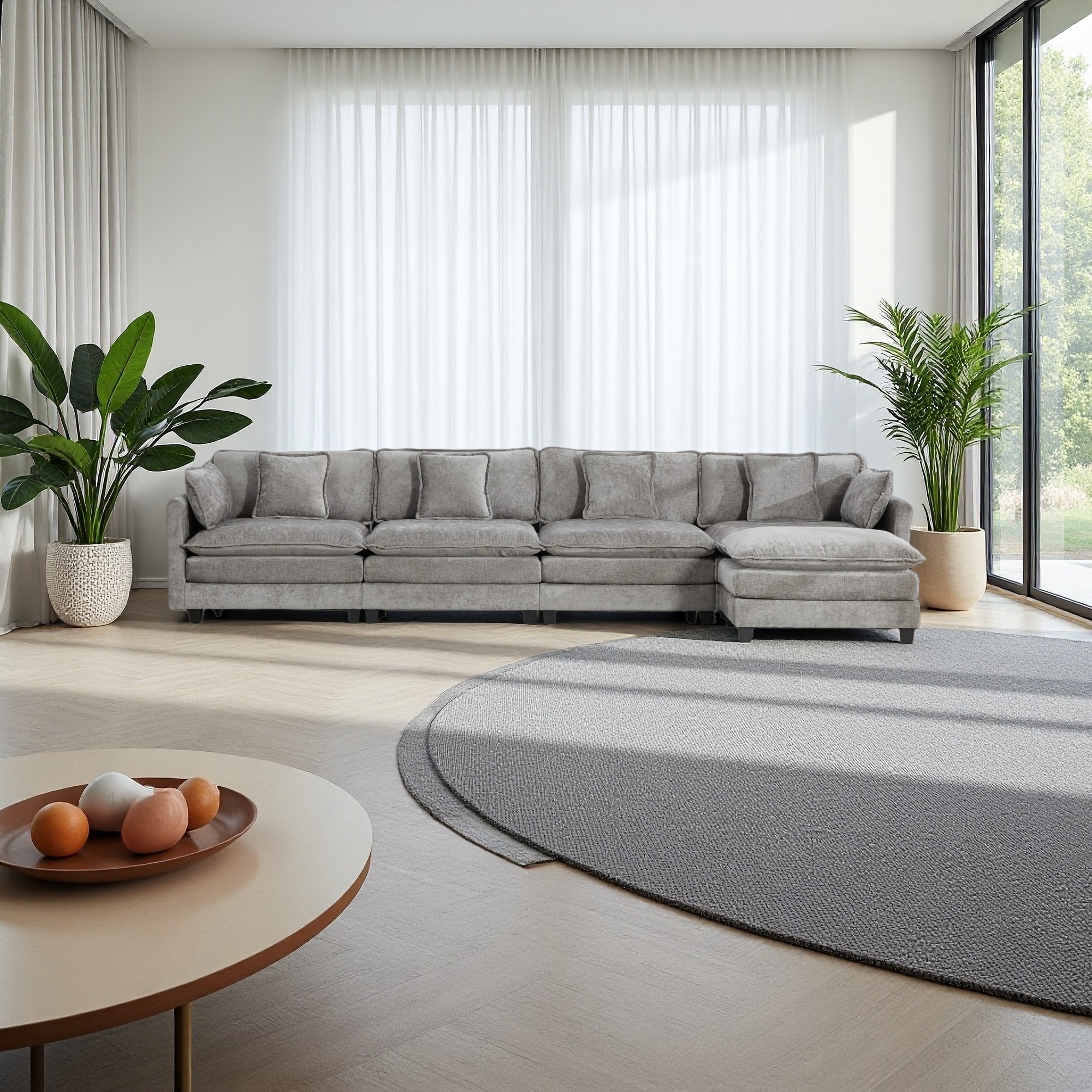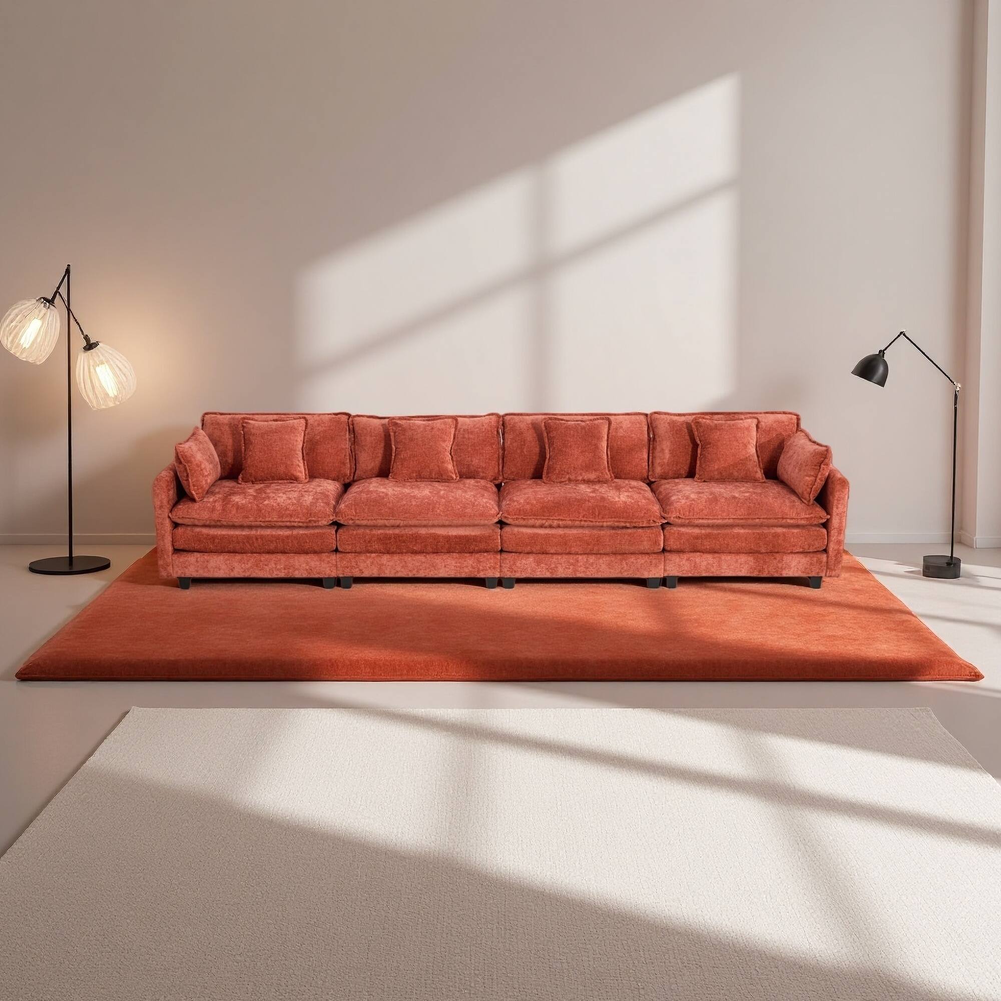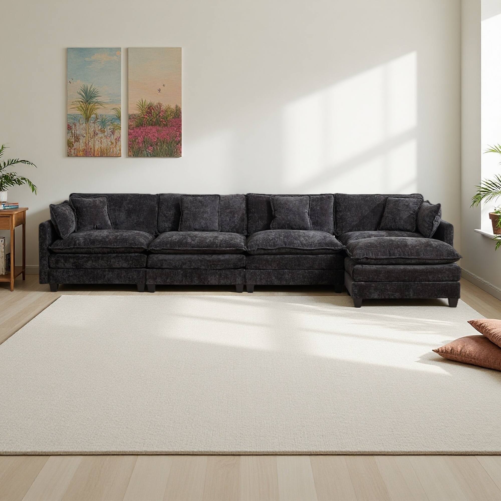 149.6" Chenille Cloud Modular Sectional Sofa with Double Layer Cushions (4-Seater)