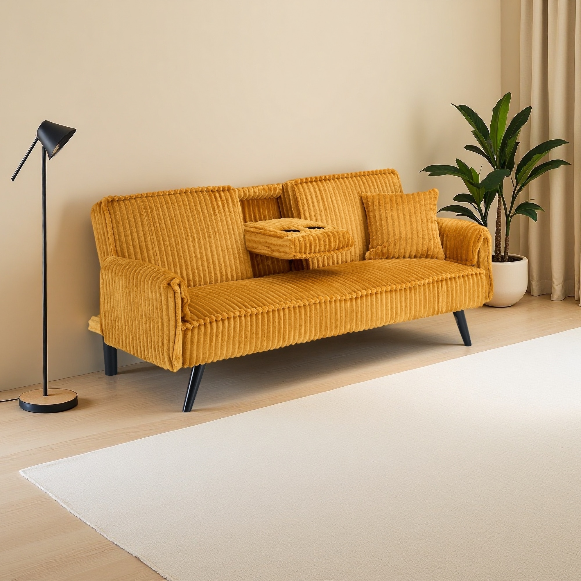 72.04" Corduroy Minimalist Straight-line Sofa with Convertible Cup Holder and Adjustable Backrest (2-Seater)
