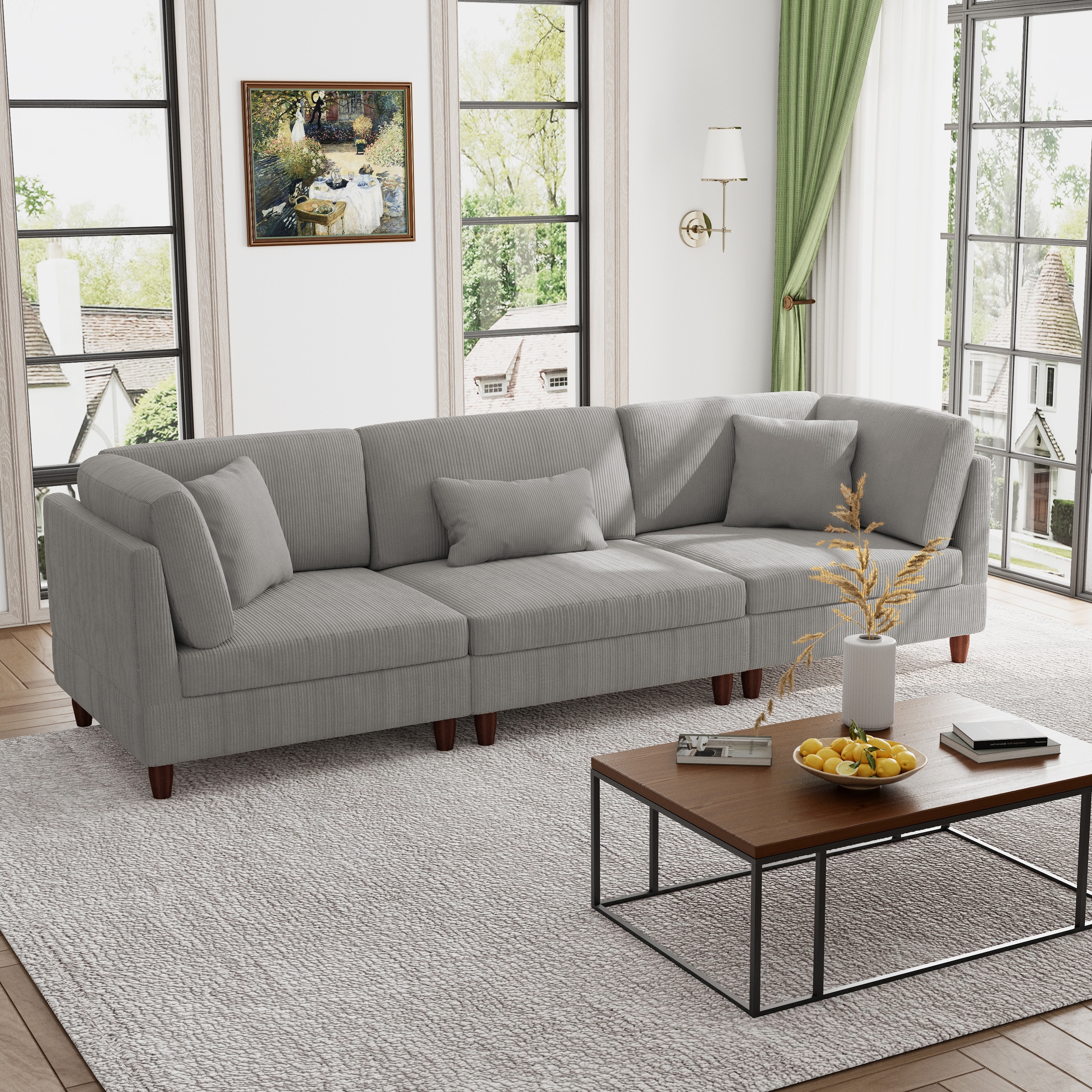 103.5" Corduroy Modular 4-Seat Sectional Sofa with Deep Seat & Pocket Spring