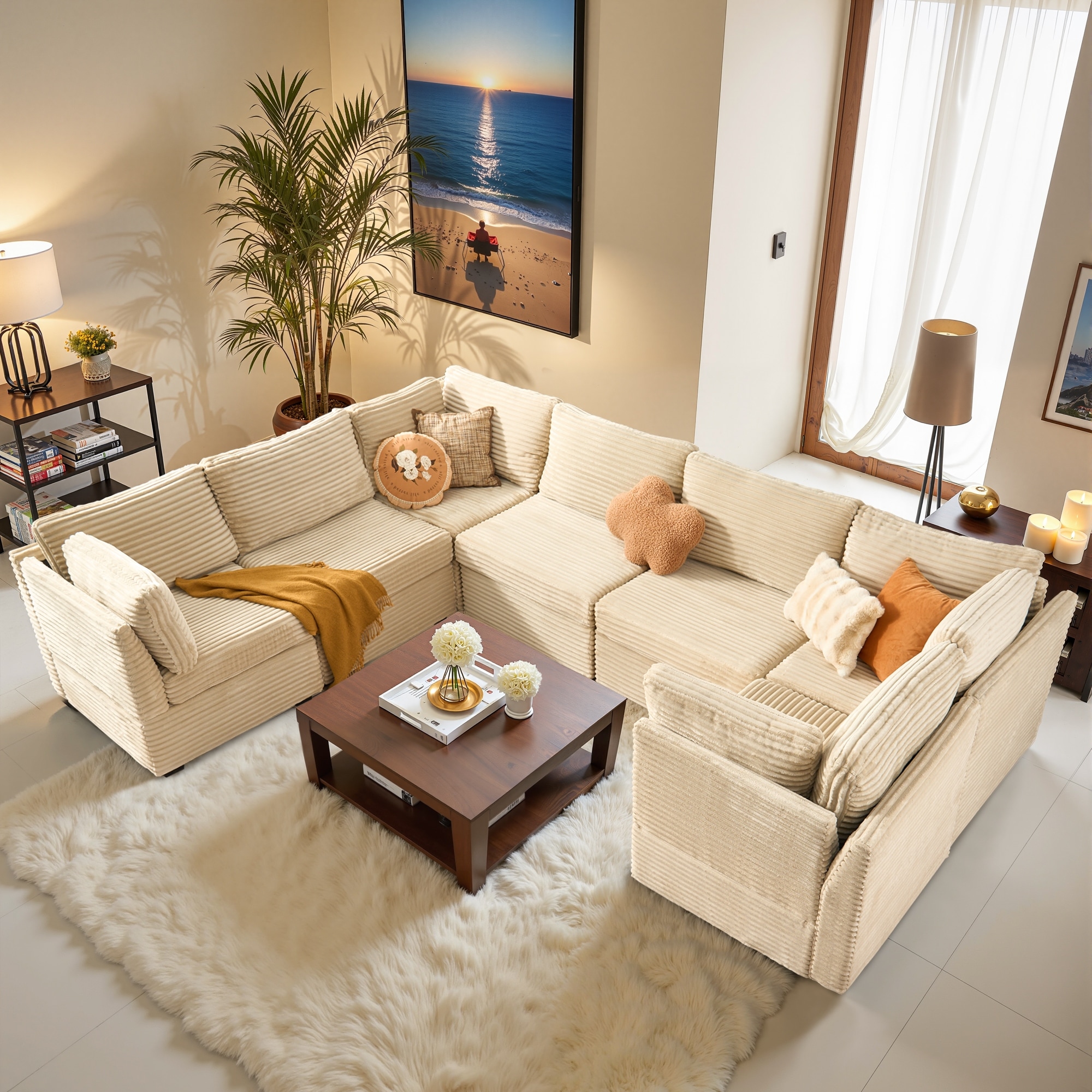 108'' Sectional Couch Cloud Modular Modern L-Shaped Sofa with Chaise Lounge, Corduroy Fabric, No Assembly Required