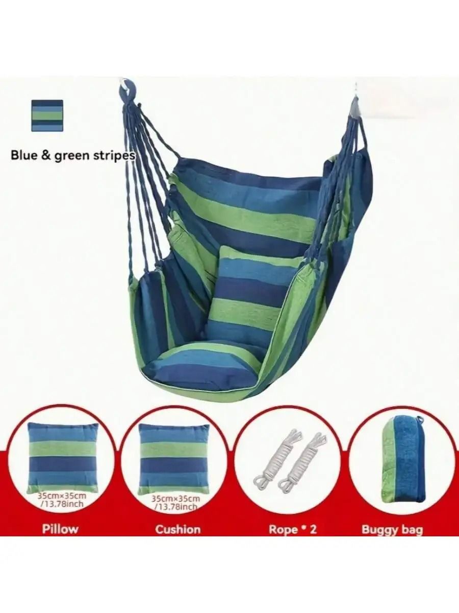 Portable Outdoor Hammock Chair With Pillow And Cushion Hanging Chair blue