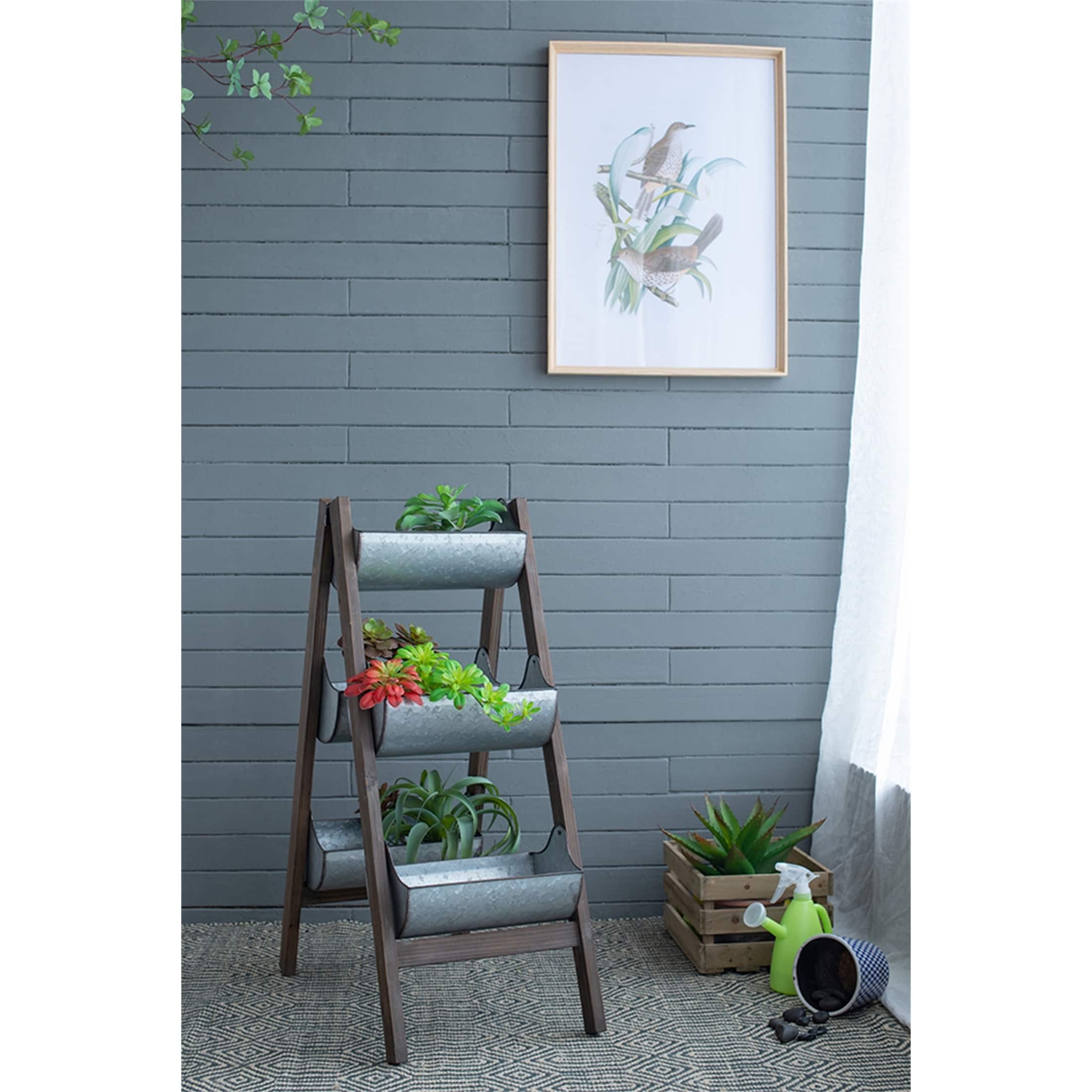 Farmhouse Foldable Reed Galvanized and Wood Ladder Planter