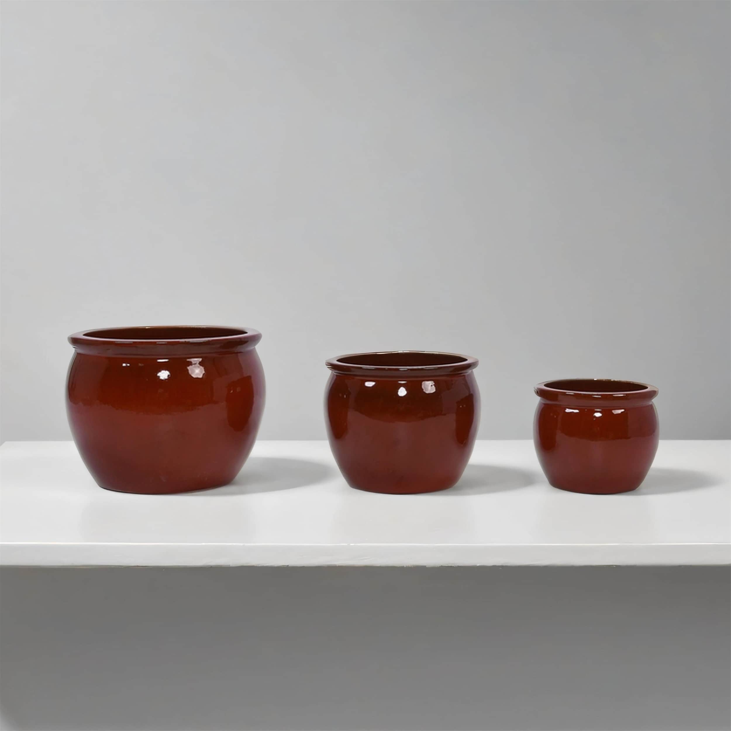 3pc Durable Ceramic Pots with Weatherproof Coating
