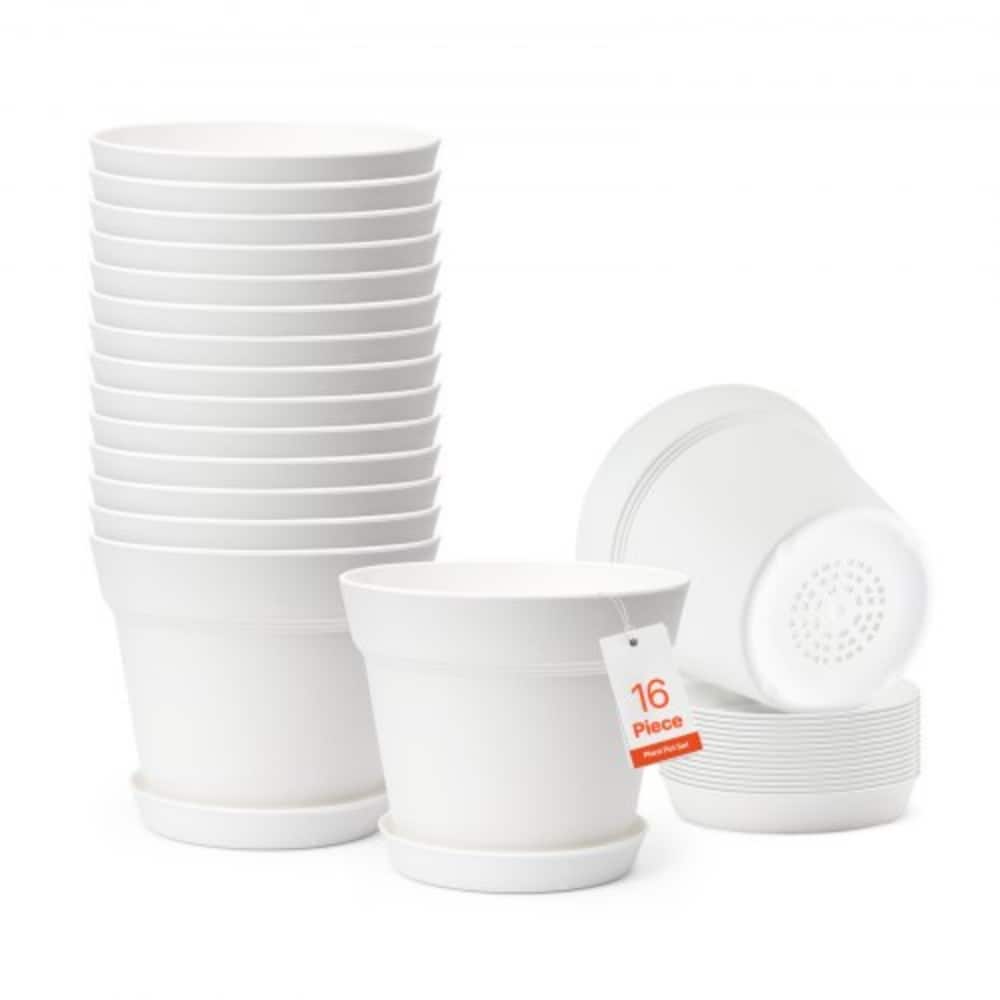 16-Pack Plastic Plant Pots with Drainage Holes for Plants - 6 x 6 x 5 inch