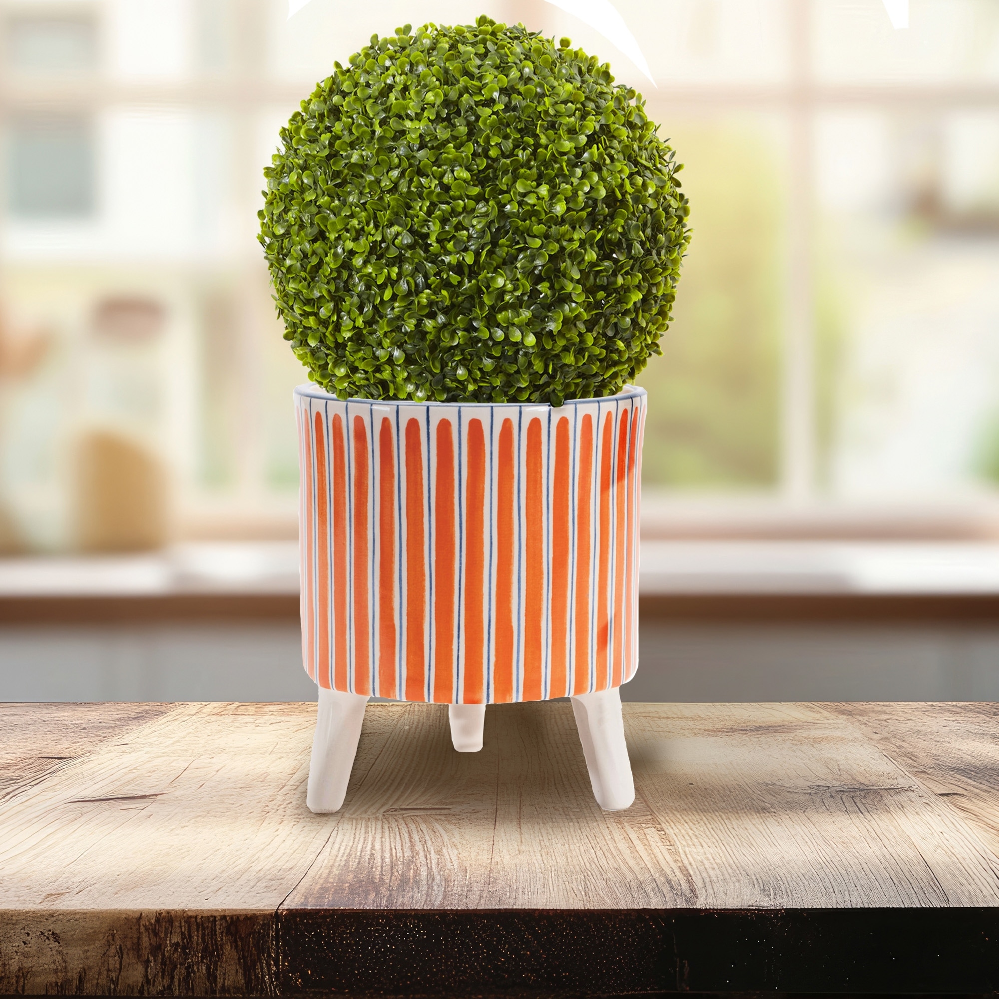 Striped Dolomite Planters with Legs - 5.75" - Orange and Blue - Set of 2
