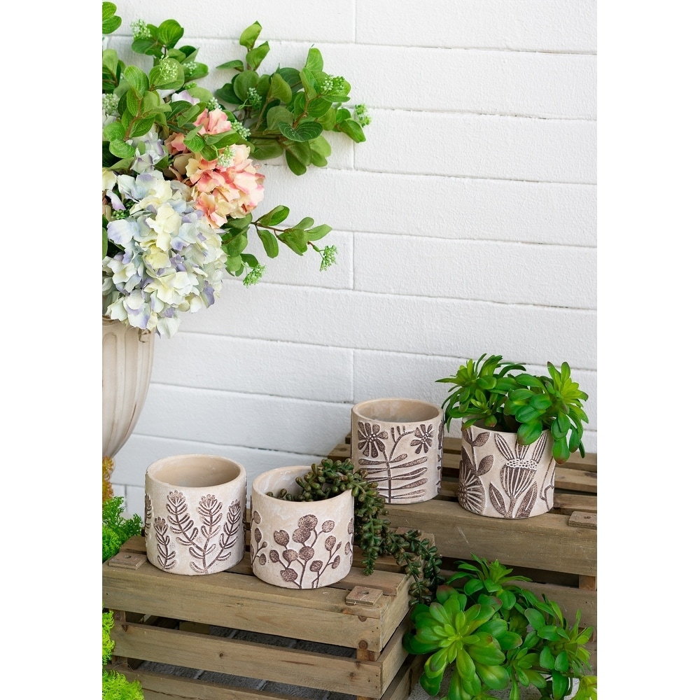 Set of 4 Decorative Ceramic Planters with Floral and Botanical Designs, Ideal for Succulents