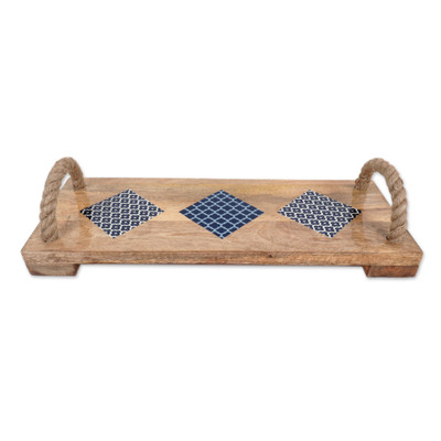 Sylvan Spaces,'Geometric Teak Wood Decorative Tray from Thailand (Small)'