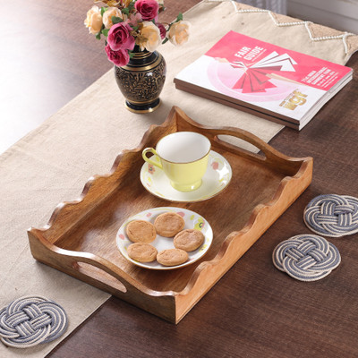 'Handcrafted Large-Sized Wavy Mango Wood Tray Made in India'