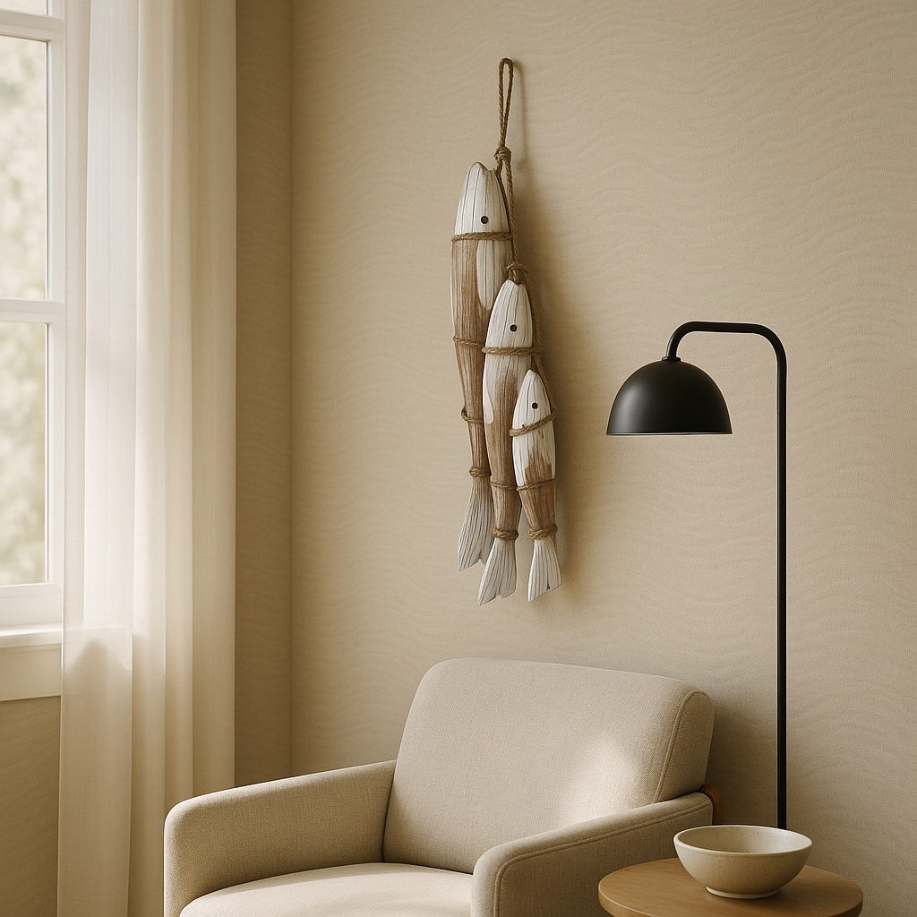 Decorative Wooden 3 Fish on Rope Figurine for Home Decor - 35", White - 35.0"
