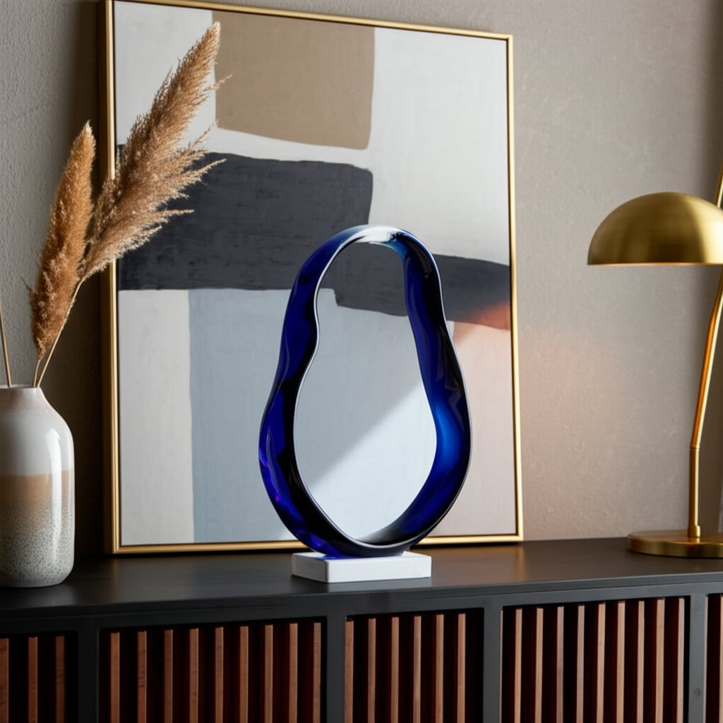 Resin Sculpture Statement with Crystal Base Home Decor - 12" Blue - 9.25" x 2.5" x 11.5"