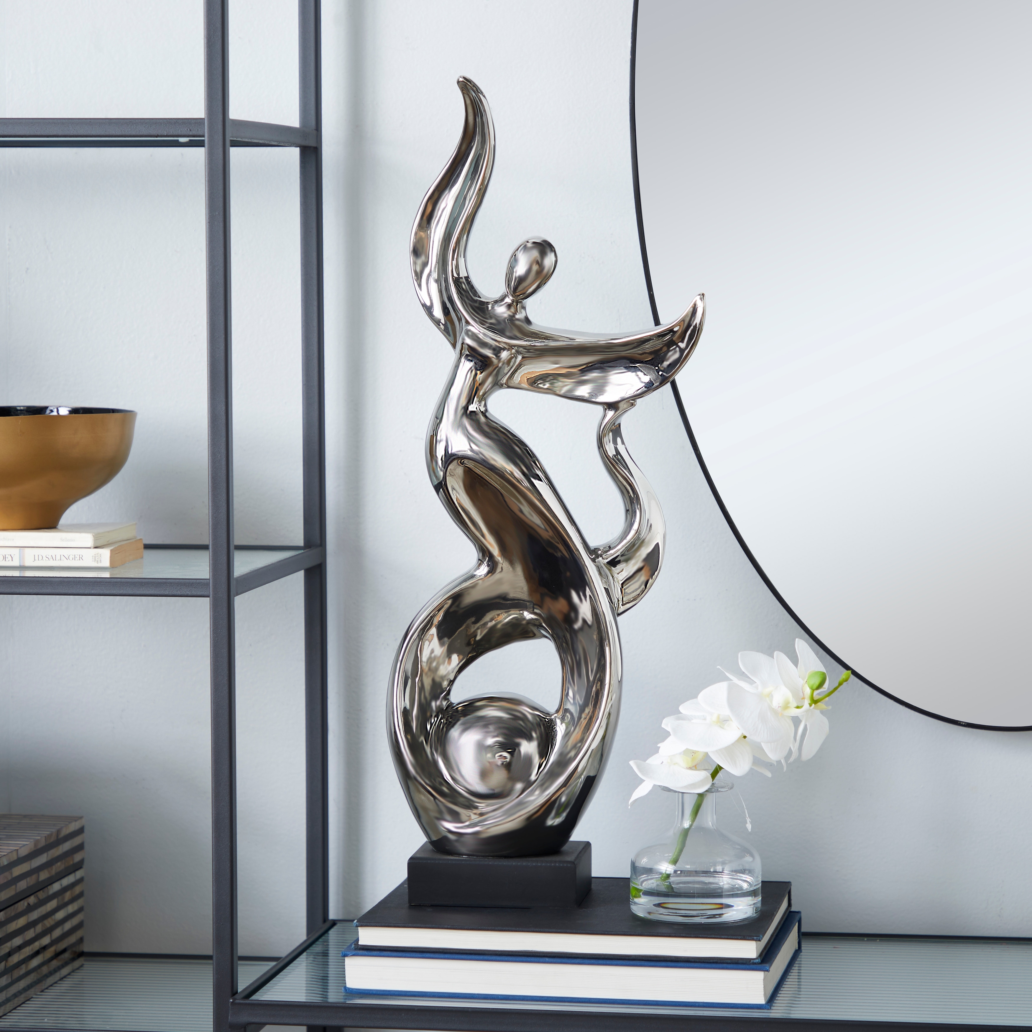 Silver Ceramic Dancing People Decorative Sculpture - 10 x 5 x 25