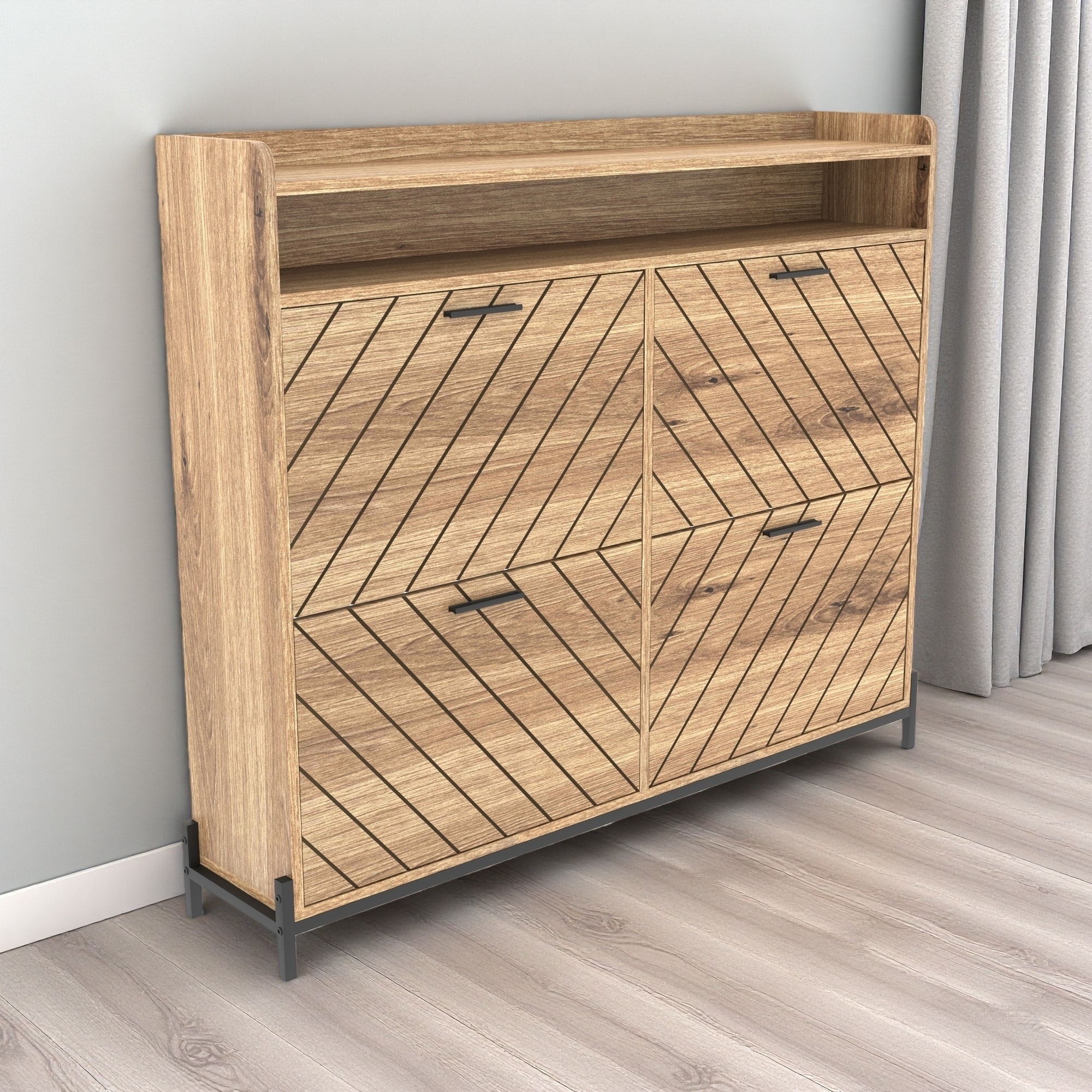 Freestanding Shoe Cabinet with 4 Flip Drawers for Entryway, Hallway