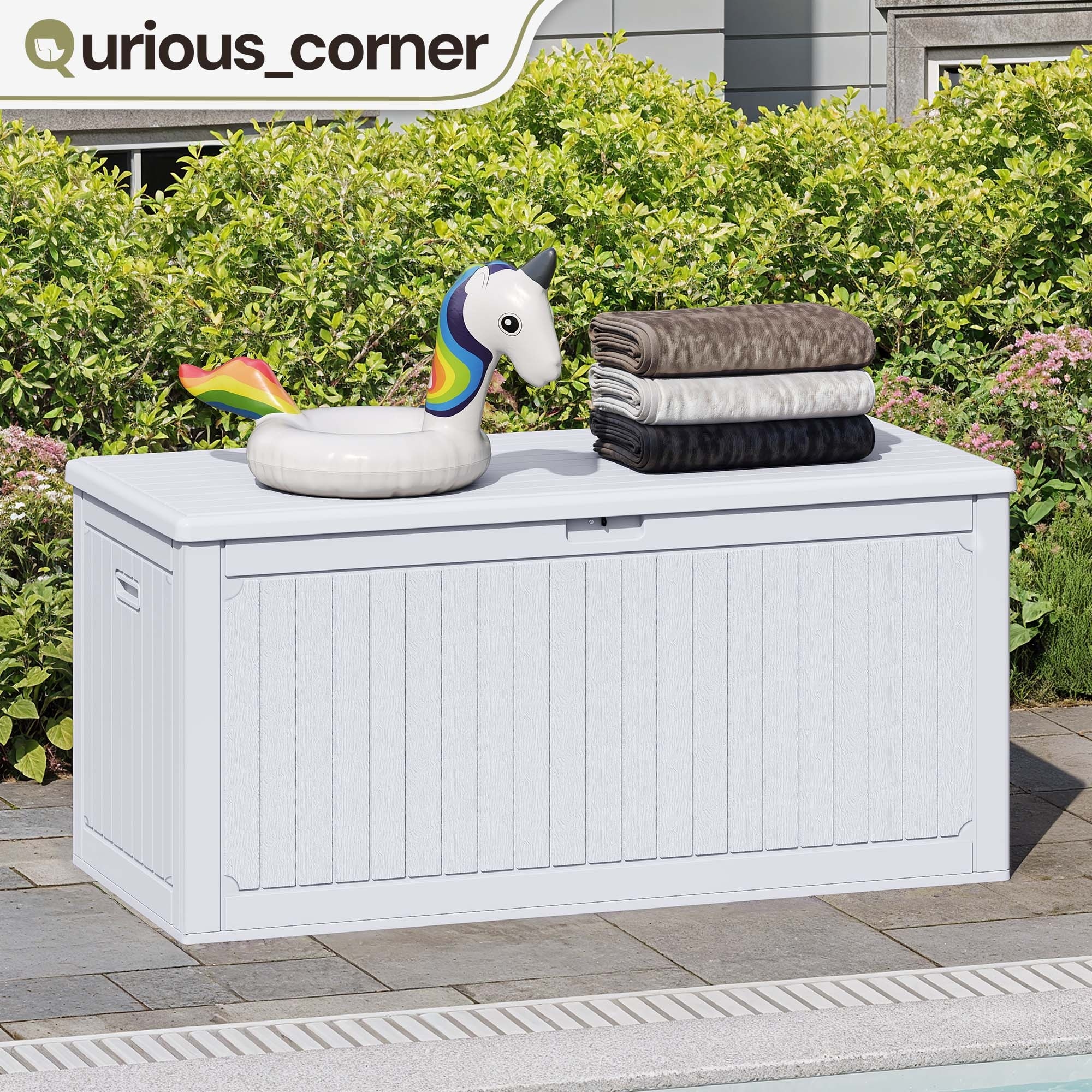 Moasis 260 Gallon XXL Resin Outdoor Storage Box, Waterproof Lockable Deck Box with Divider, Use as Seating & Table