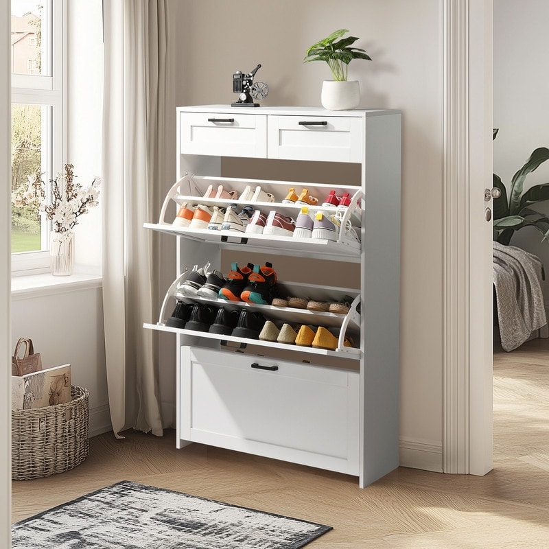 3 Shoe Storage Flip Drawers and 2 Small Drawers Shoe Cabinet White