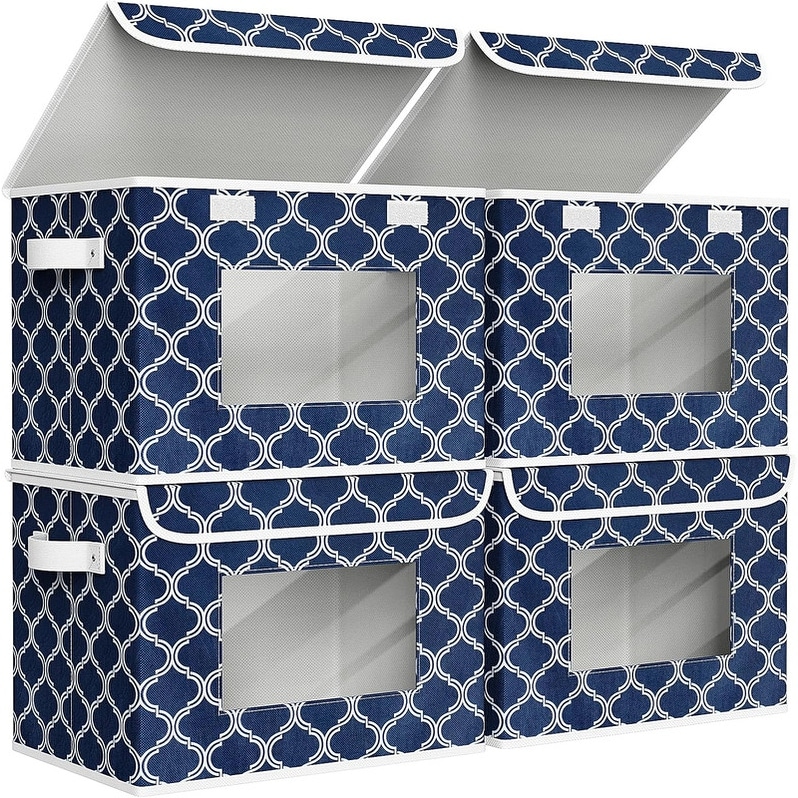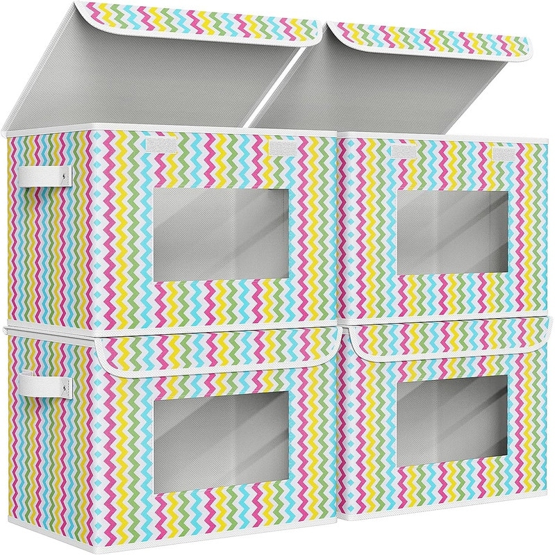Fabric Foldable Decorative Basket Storage Bins with Lids Set of 4 - 17"L x 12"W x 12"H