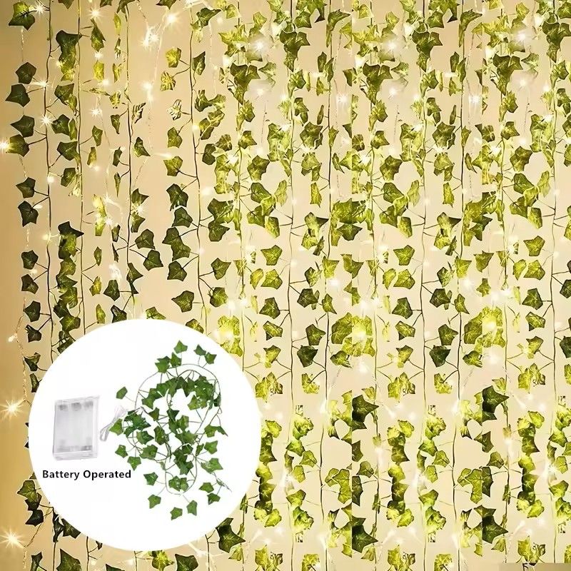 Green Leaf String Light Artificial Vine Battery Powered Decorative Light green Dill 2m 20leds