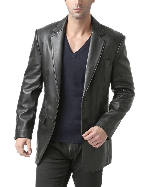 Men Classic Two-button Leather Blazer - Black - BGSD Jackets