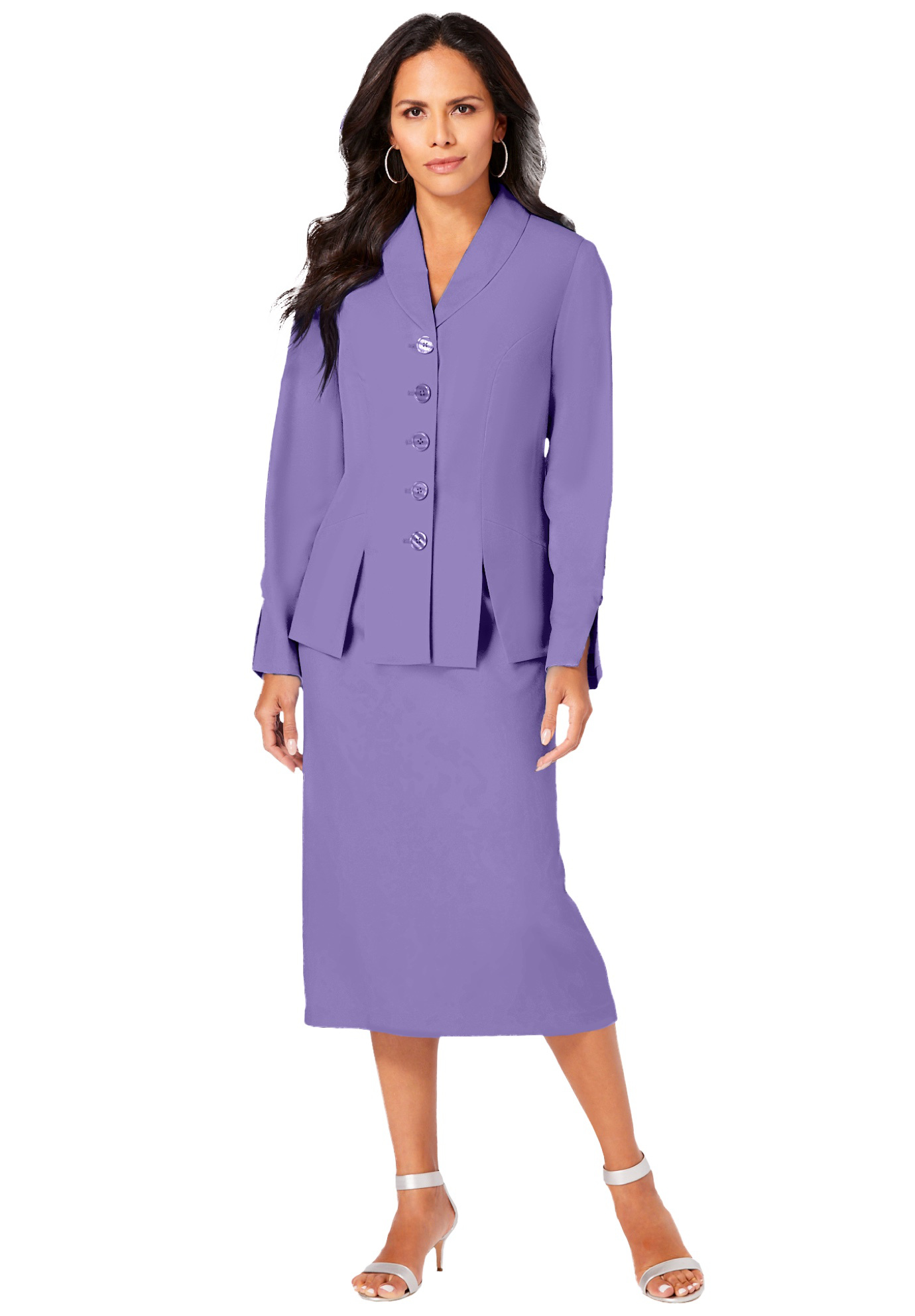 Plus Size Women's Plus Size Long Sleeve Shawl-Collar Jacket & Sheath Skirt Set - 2-Piece Suit by Roaman's in Vintage Lavender (Size 20 W) Skirt Suit