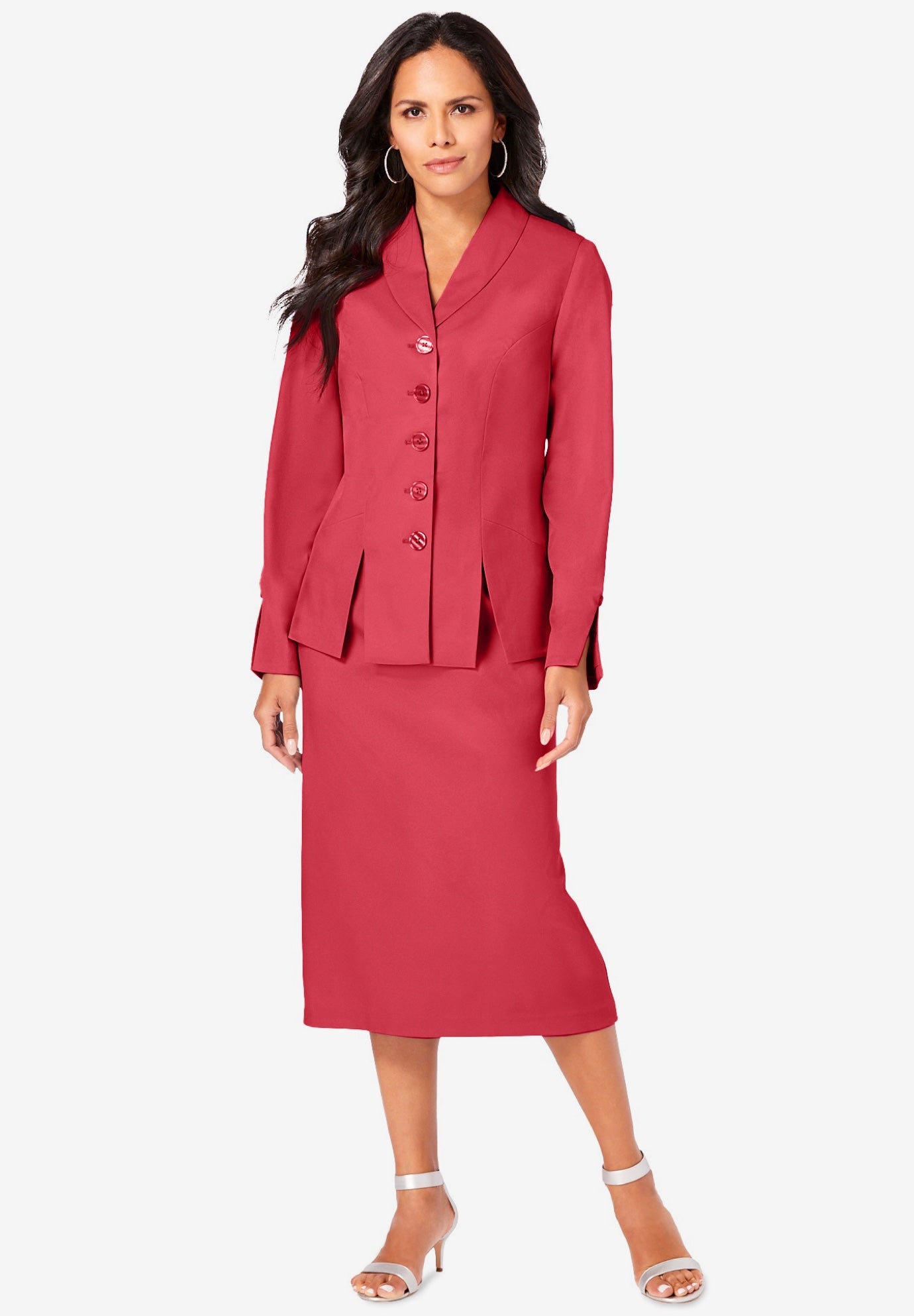 Plus Size Women's Plus Size Long Sleeve Shawl-Collar Jacket & Sheath Skirt Set - 2-Piece Suit by Roaman's in Vivid Red (Size 28 W) Skirt Suit