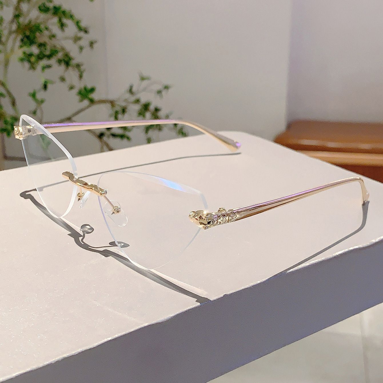 Vintage Rimless Triangle Cat Eye Sunglasses Luxury Designer Sun Glasses For Women & Men clear