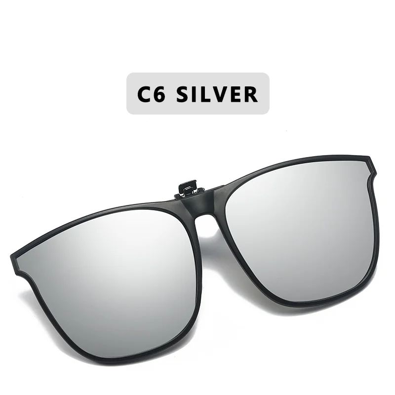 Men's Polarized Clip On Driving Glasses, Night Vision, Anti Glare, Vintage Square Sunglasses silver