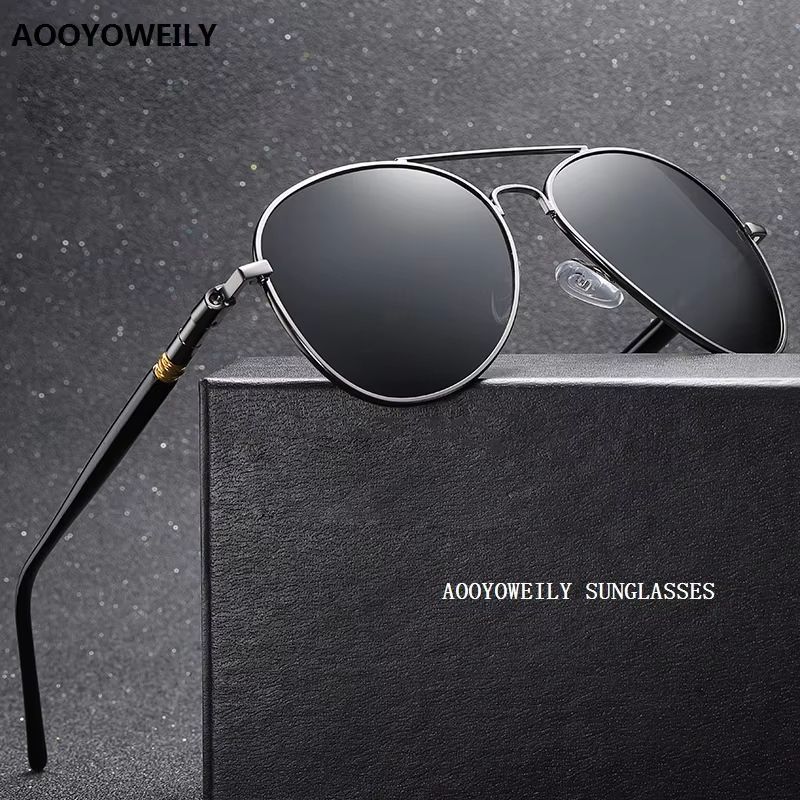 AOWEAR Aviation Polarized Sunglasses For Men Aluminum Alloy Driving & Designer Mirror Eyewear grey Black Lens
