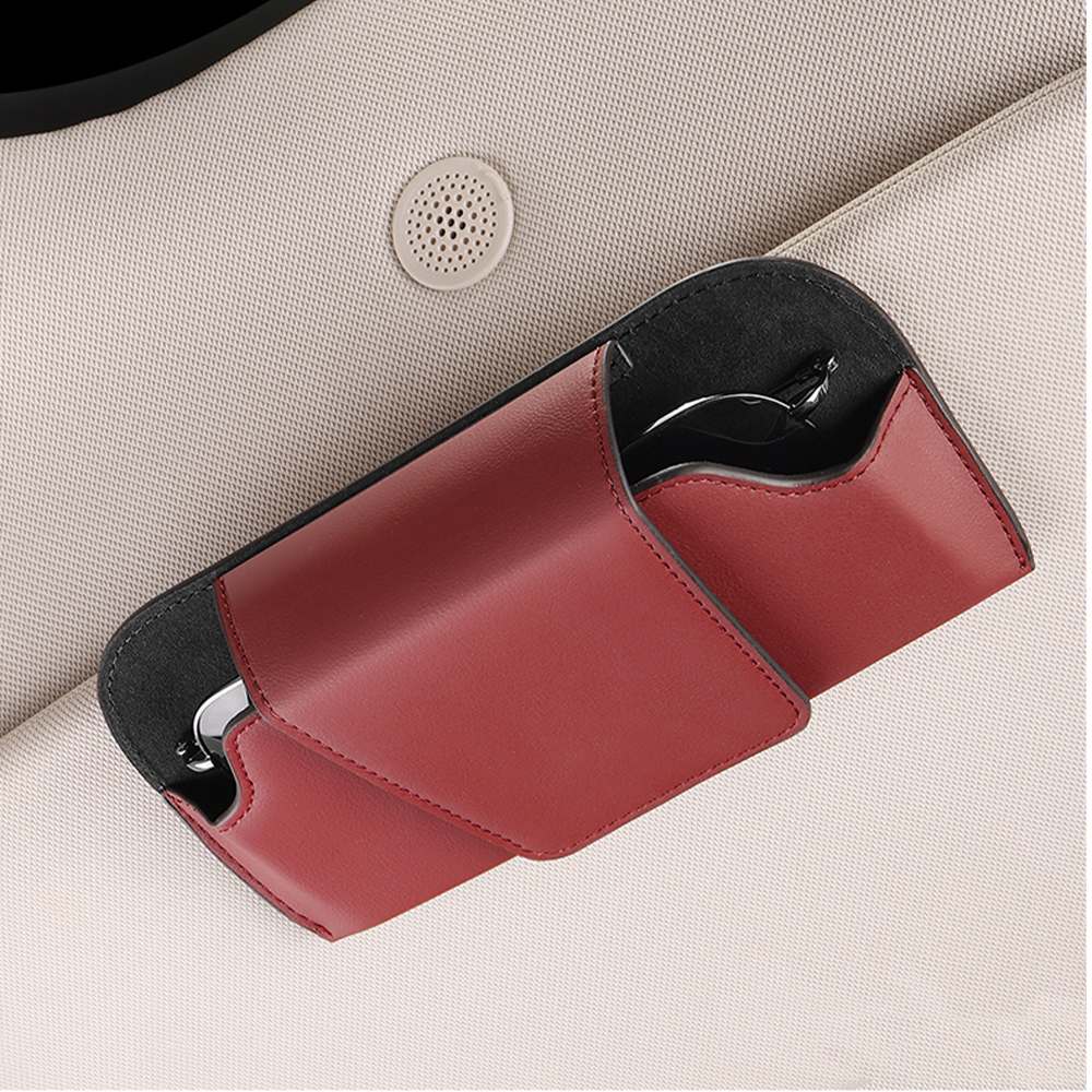 Universal Auto Sun Visor Glasses Box Clip, Magnetic Car Sunglasses Holder Case, Eyeglasses Storage Fastener beige