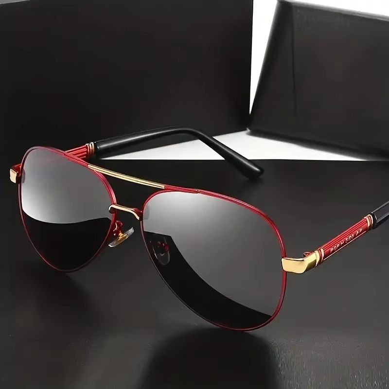 Polarized Aluminum Sunglasses UV400 HD Lens Pilot Eyewear With Photochromic Night Vision Protection black Gray