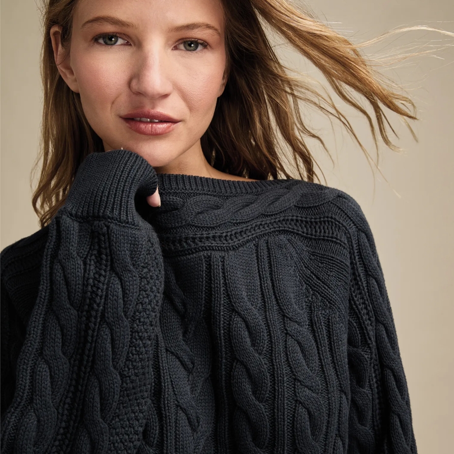 Lucky Brand Boat Neck Cable Sweater - Women's Clothing Tops Sweaters in Midnight Navy, Size XL