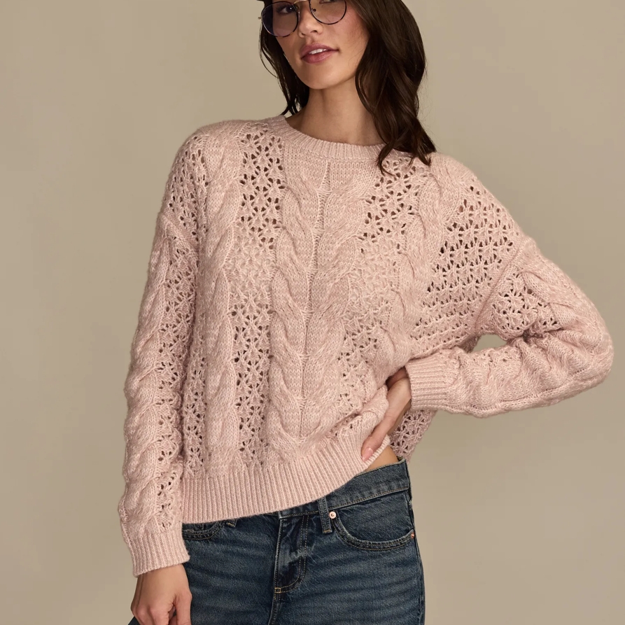 Lucky Brand Pointelle Cable Crew - Women's Clothing Outerwear Tops Sweatshirts Crewneck Hoodies in Rose Smoke, Size M