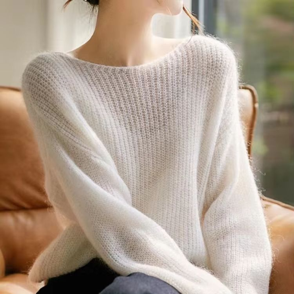 Elegant See Through Loose Knit Sweater Soft Warm Autumn Winter Cashmere Pullover For Women blue one Size