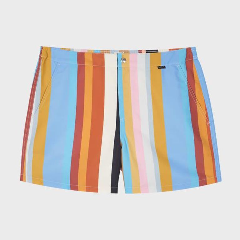 'Signature Stripe' Buttoned Swim Shorts - Blue - Paul Smith Beachwear