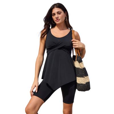Plus Size Women's Longer-Length Twist-Front Tankini by Swim 365 in Black (Size 22)