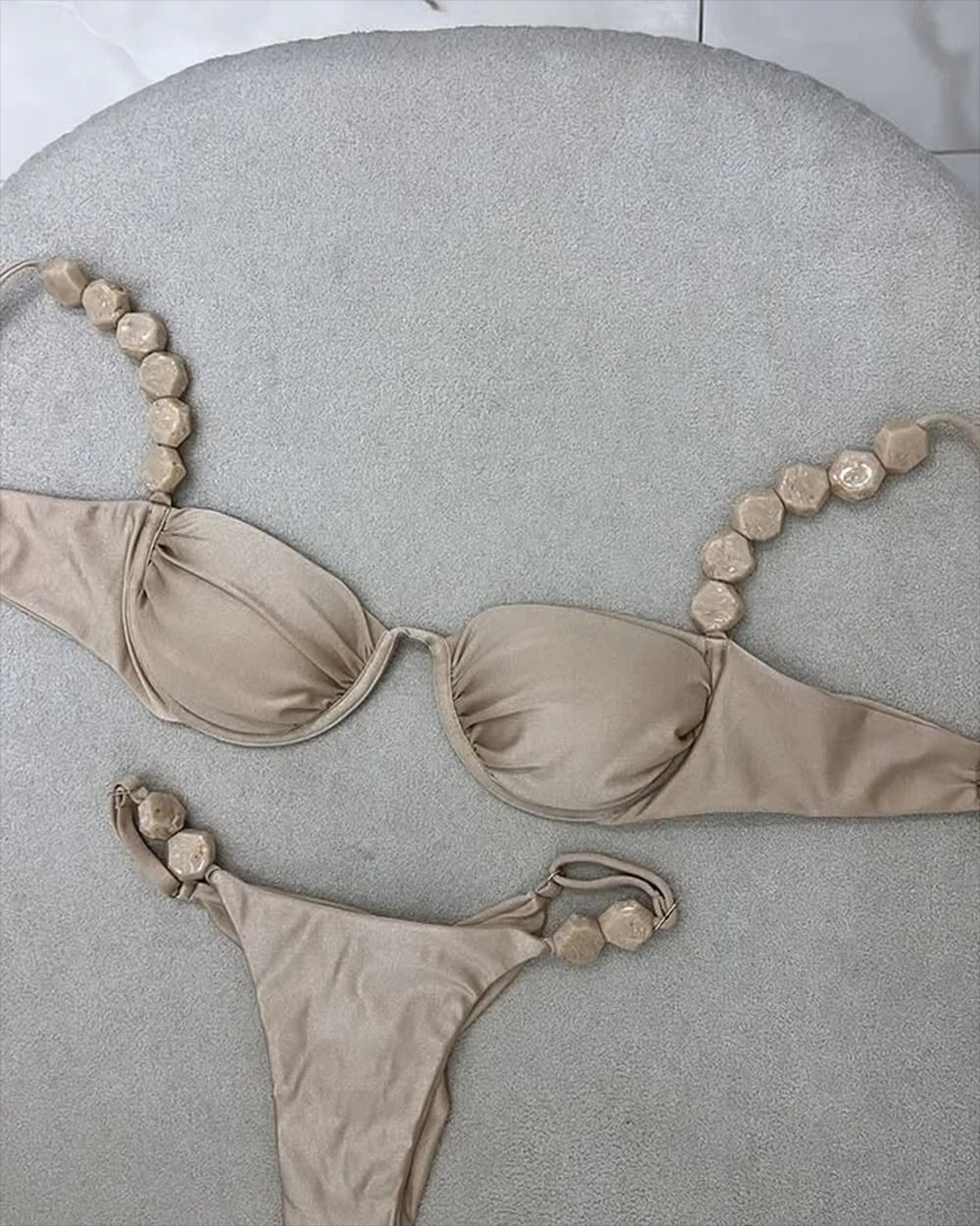 Sexy Micro Brazilian Thong Bikini Set beige l