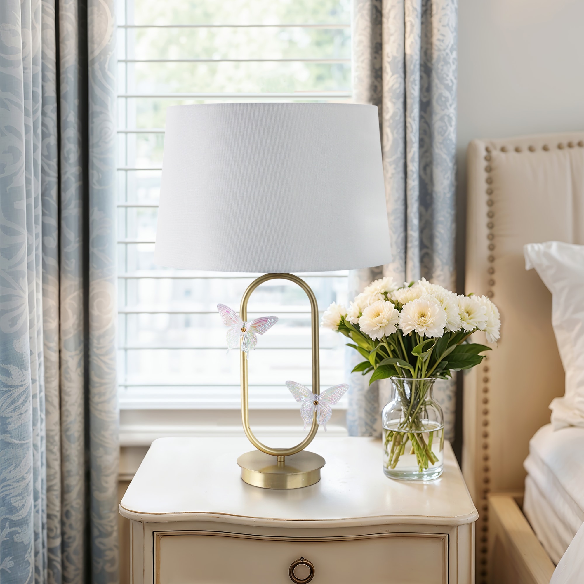 Metal Table Lamp Iridescent Butterfly Accents Fabric Shade - 24" Gold - 15" x 15" x 24"
