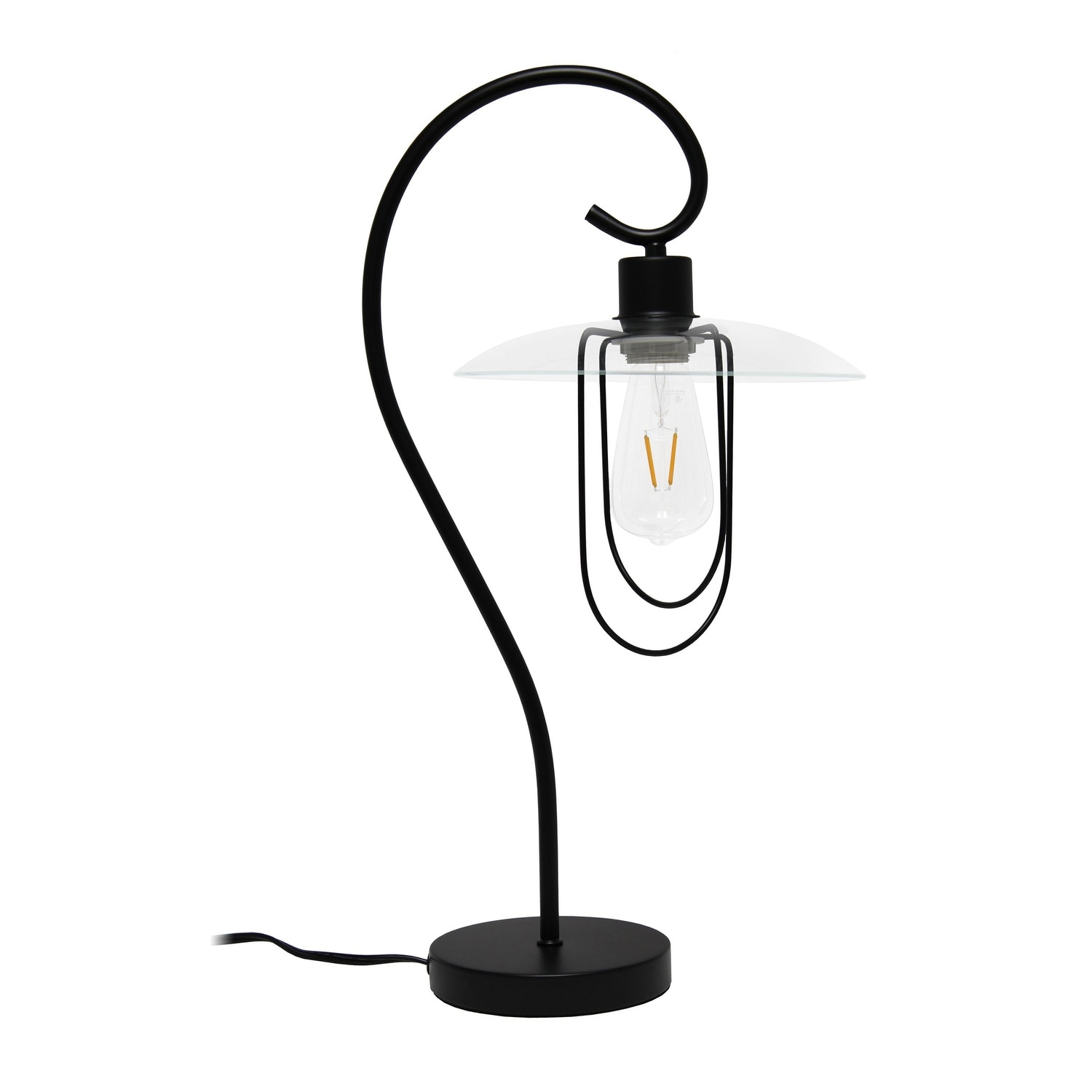 Simple Designs Modern Table Lamp with Curved Metal Base - Black - 11.5"Lx9.75"Wx22.2"H