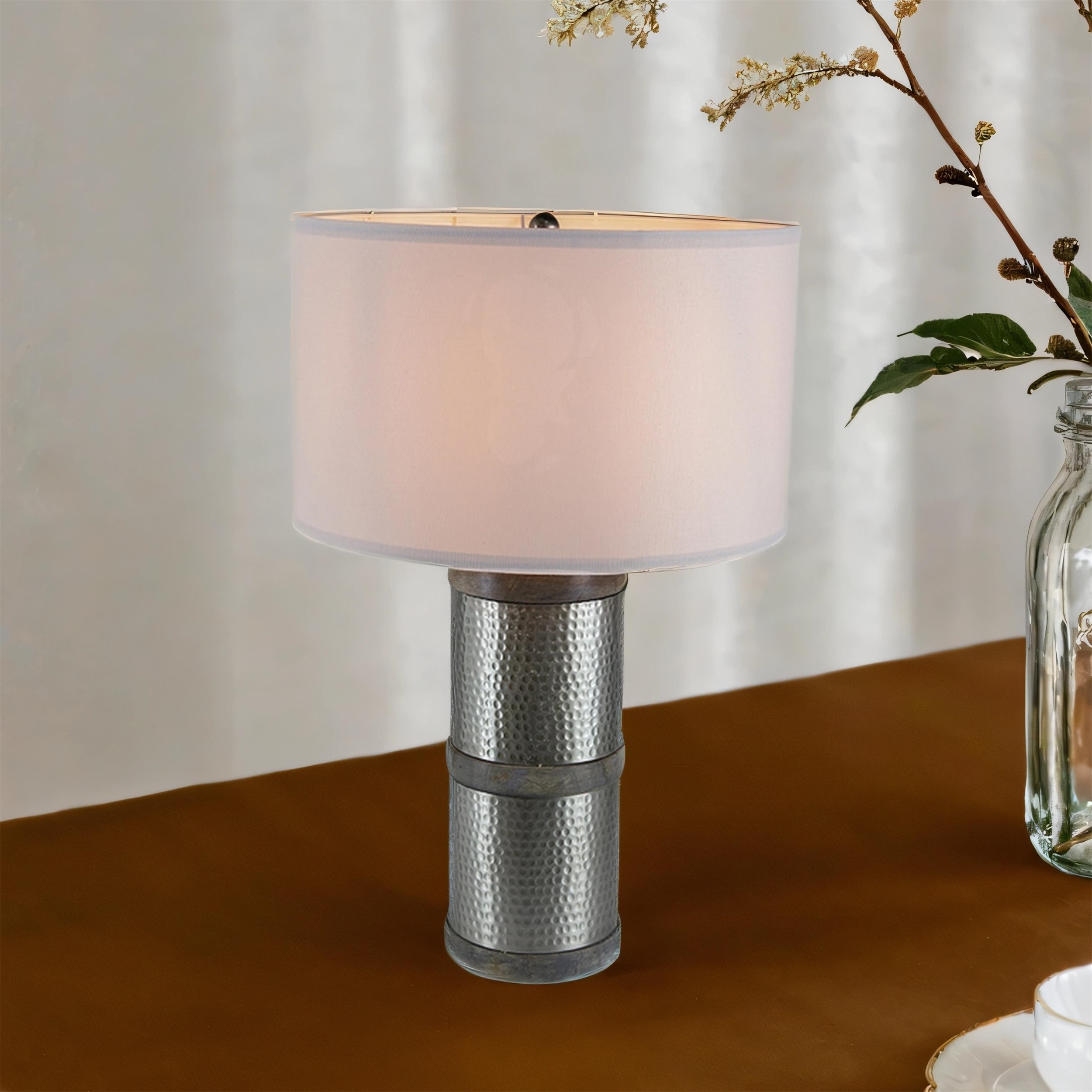 24.4 inch Table Lamp with Drum Shade, Gray Finish, Soft Glow Lighting